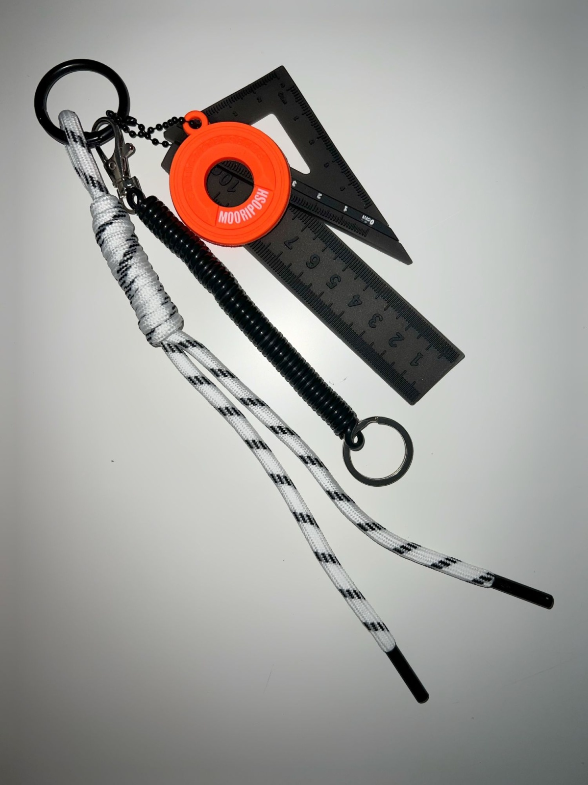 Стильный брелок обвес станет ярким акцентом для любой сумки или рюкзака. Он также отлично подойдет как оригинальный аксессуар для телефона или надежное решение для хранения ключей — с таким брелком вы точно не потеряете их из виду. Украшение легко крепится благодаря специальному карабину. В комплект входят 5 съемных подвесок, которые крепятся к карабину: - Оранжевый кружок с логотипом MOORIPOSH; - Две силиконовые линейки; - Пружинка; - Белый шнурок. Каждый элемент можно легко отстегнуть, менять местами и использовать по отдельности, добавлять новые предметы создавая свой уникальный стиль.