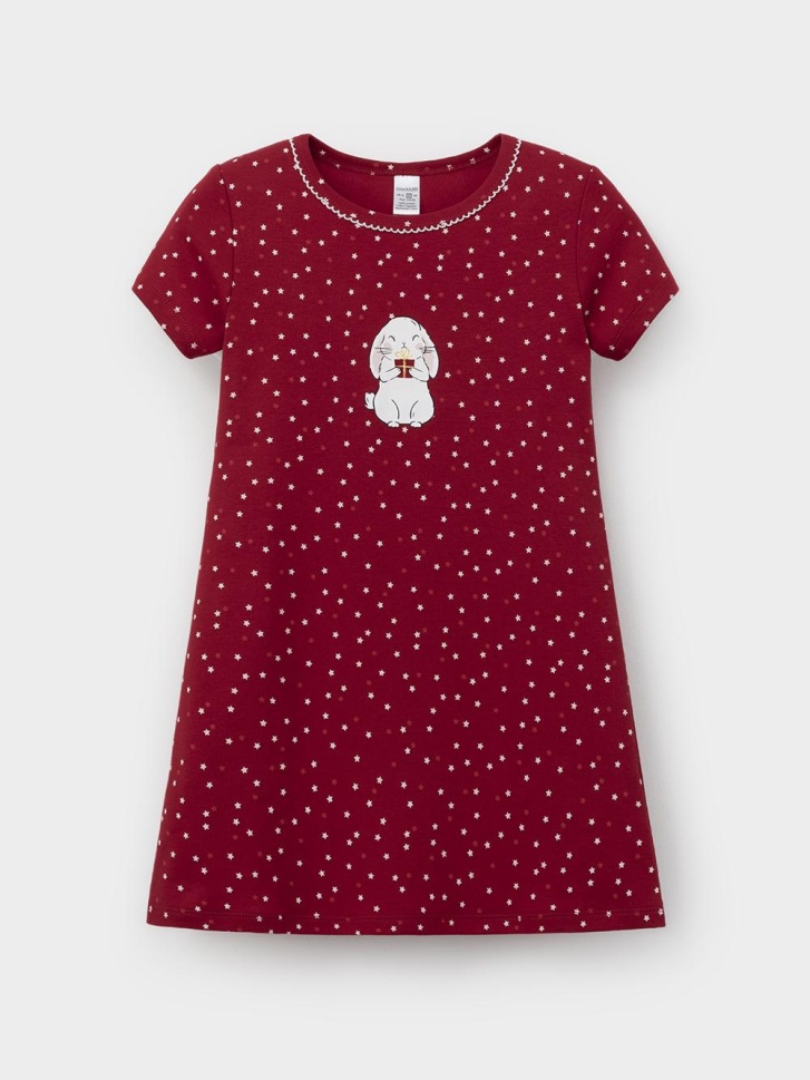Сорочка с короткими втачными рукавами из натурального хлопка для девочки. Отлично подойдёт для создания уютных домашних образов или в качестве подарка на Новый год и Рождество. Оригинальная набивка и принт выполнены из стойких текстильных гипоаллергенных красителей. Изделие сохраняет цвет и форму после многократных стирок. Все трикотажные полотна производятся в соответствии с нормами швейцарского сертификата ЭкоТекс.