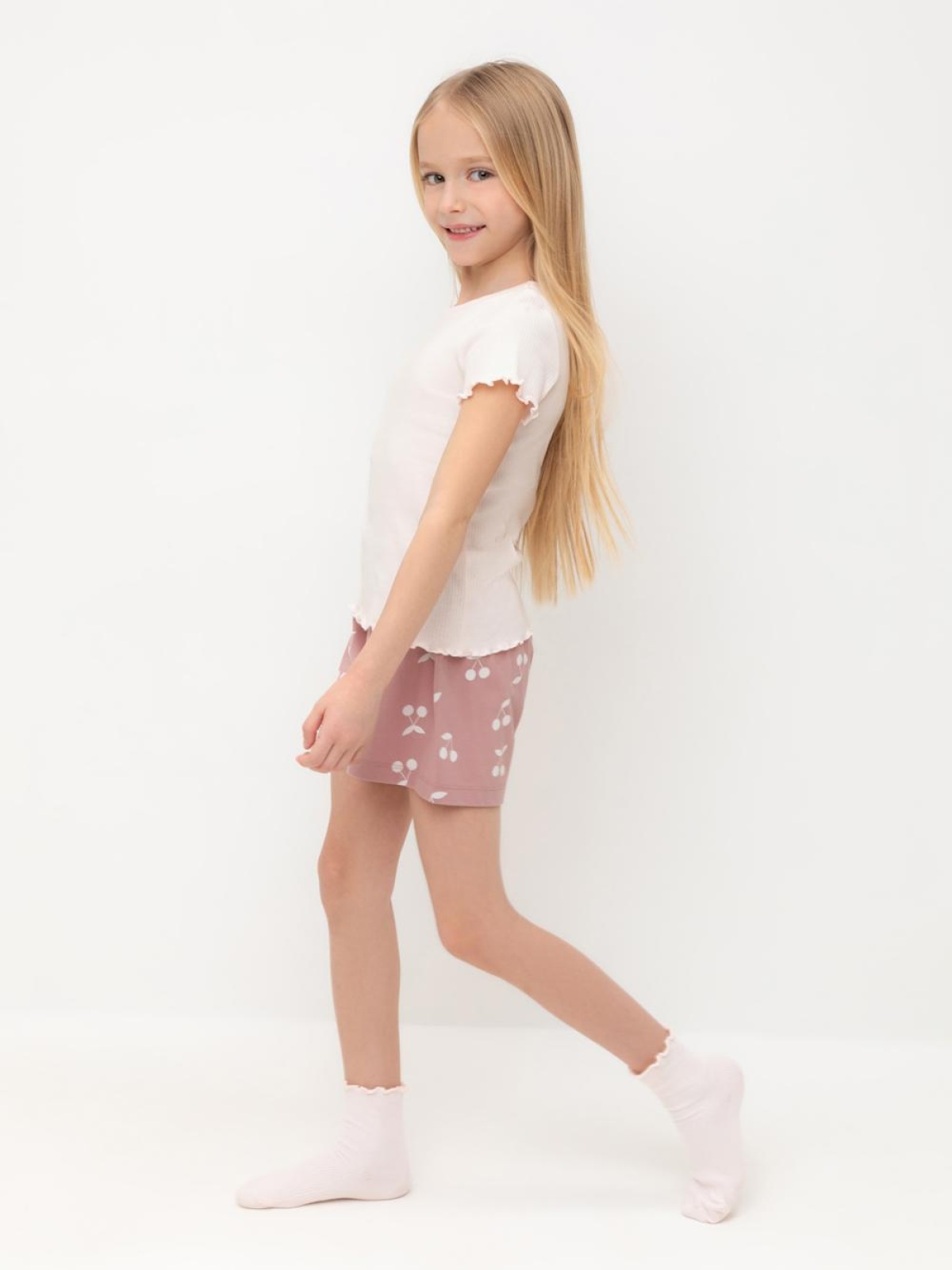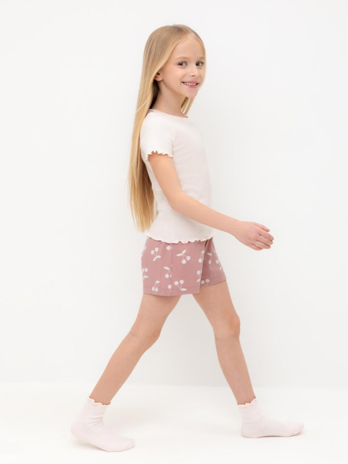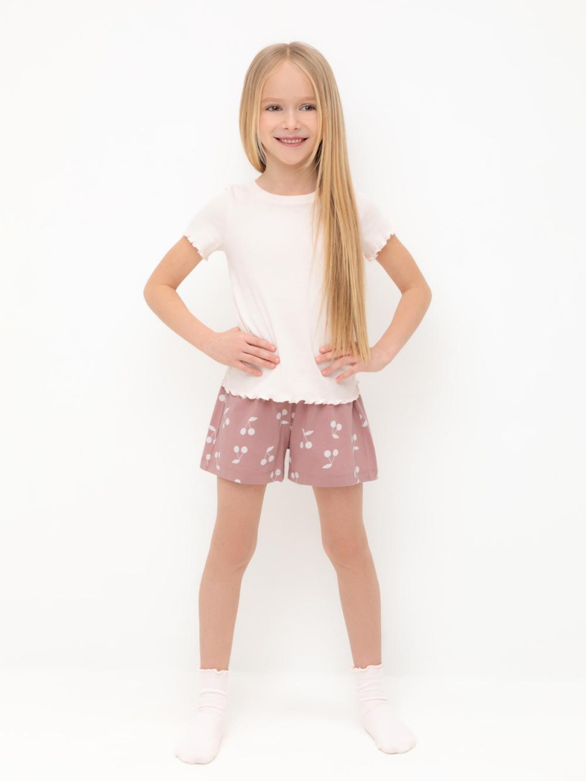 К 1596/розовый,крупная вишня пижама для девочки (фуфайка, шорты)