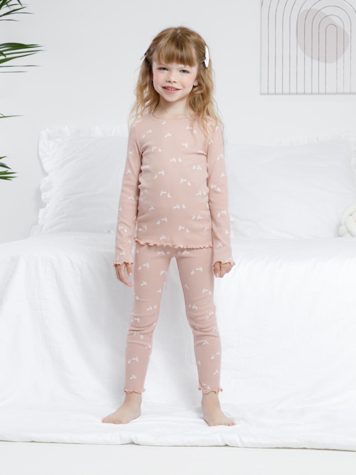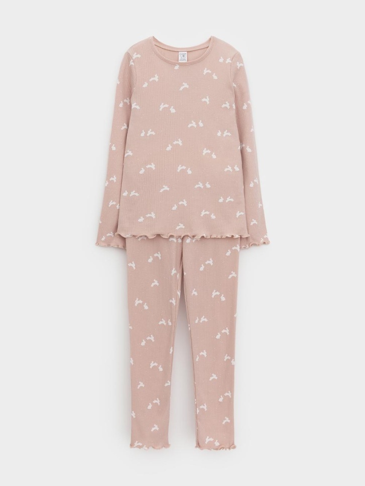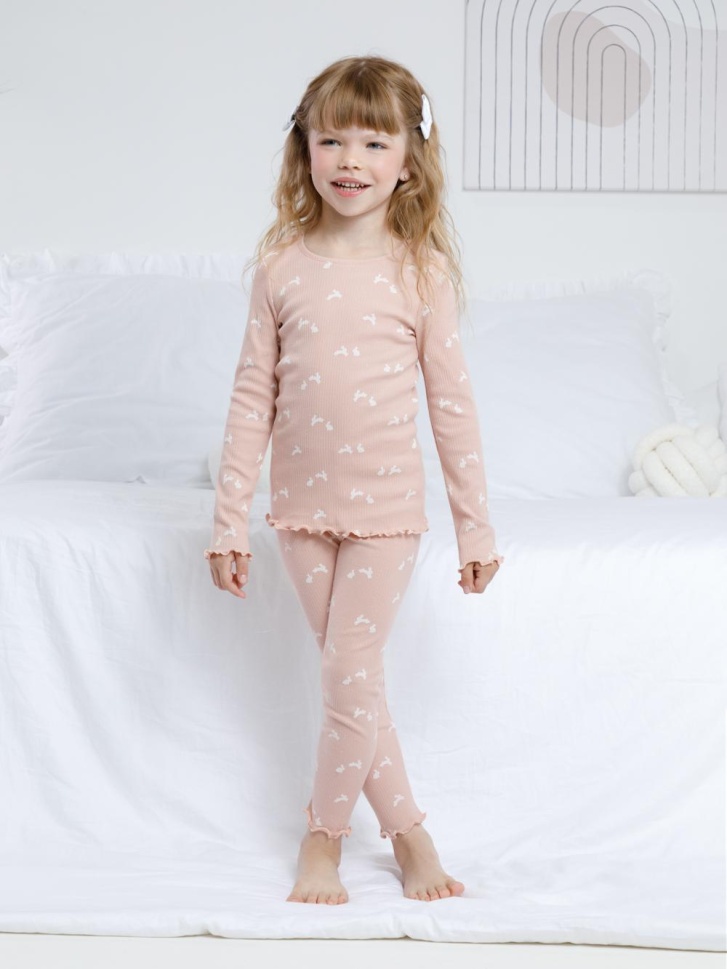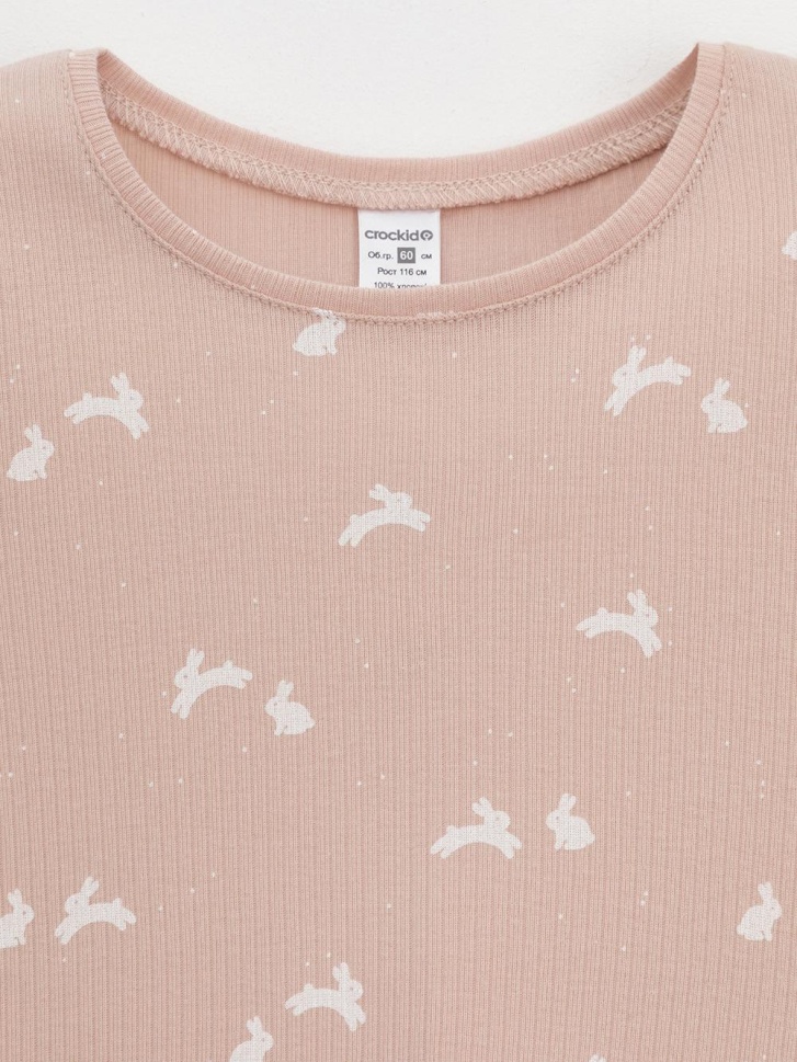 К 1618/розово-бежевый ,пижама для девочки (футболка дл.рукав, брюки)