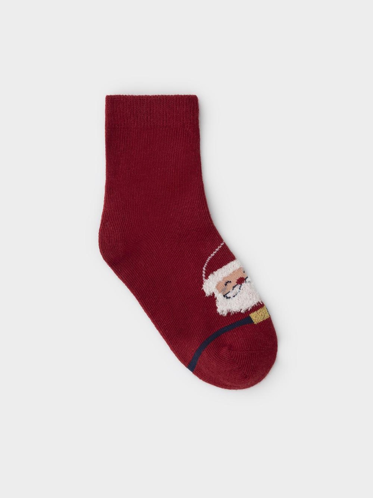 Носки короткие детские с формованной пяткой и эластичной резинкой по краю. Украшены рисунком. Отлично подойдут для создания праздничных образов или как дополнение к подарку на Новый год и Рождество. Изделие сохраняет форму и стойкий цвет после многочисленных стирок.