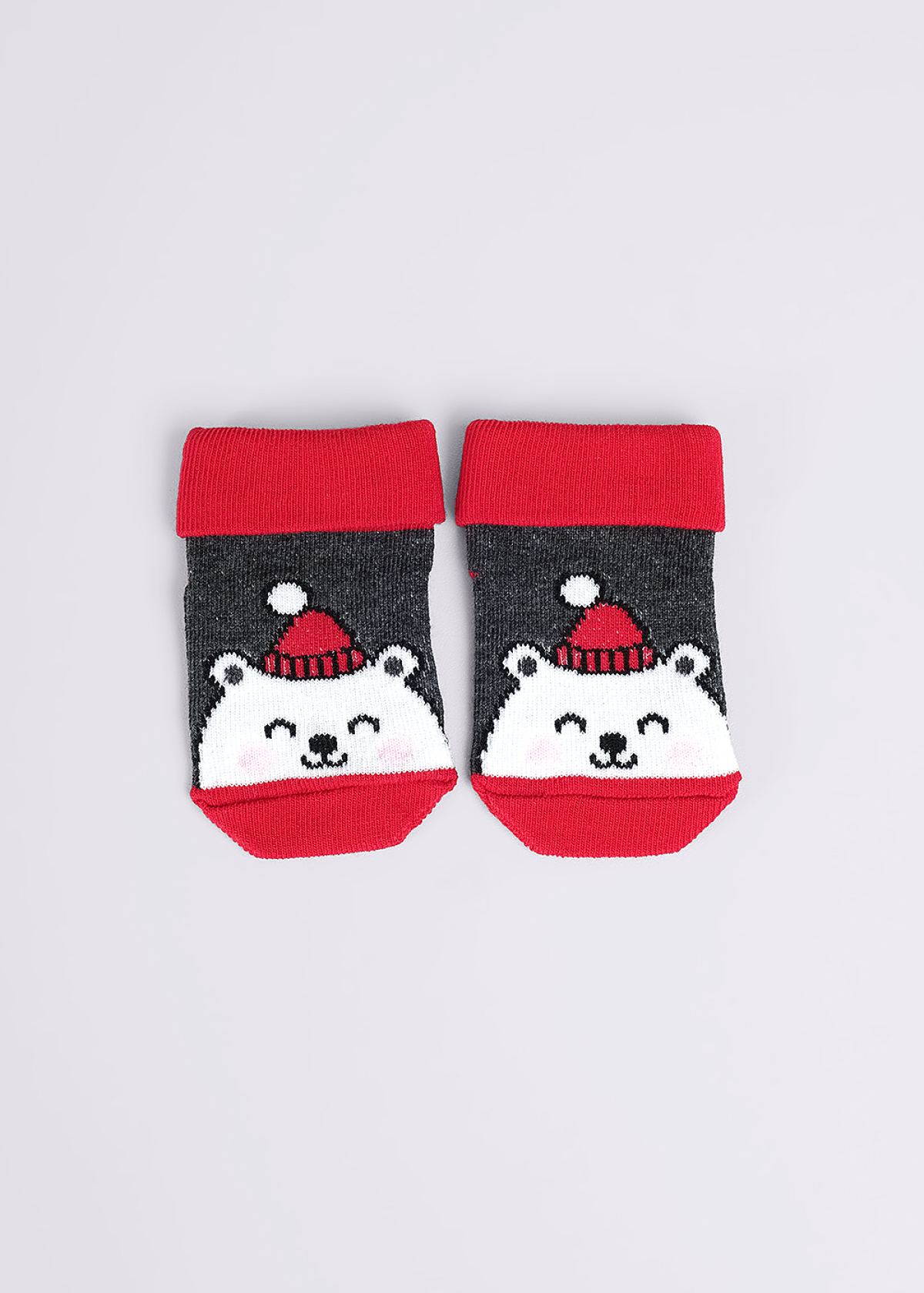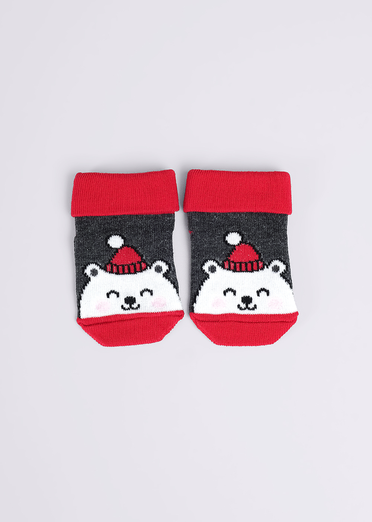 Новогодние носочки для новорожденного с рисунком Дед Мороз выполнены из хлопкового полотна с добавлением полиамида и эластана. Мягкий хлопок, входящий в состав изделия, обладает высокой воздухопроницаемостью, впитывает влагу и подходит для чувствительной кожи. Добавление эластана увеличивает износостойкость и прочность. Рекомендуется стирать при температуре до 40 градусов.