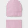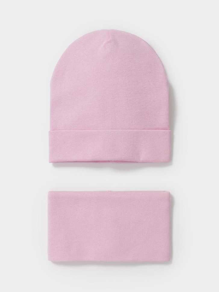Комплект для девочки: шапка и снуд. Изготовлен из хлопкового трикотажа в рубчик с добавлением спандекса. Комфортно прилегает, обеспечивая защиту от холода и хороший теплообмен. Изделия хорошо тянутся, после многократных стирок сохраняют цвет и форму.