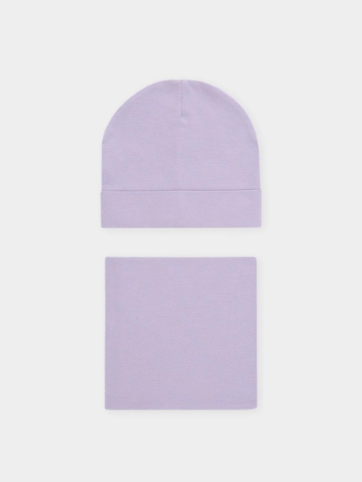 Комплект для девочки: шапка и снуд. Изготовлен из хлопкового трикотажа в рубчик с добавлением спандекса. Комфортно прилегает, обеспечивая защиту от холода и хороший теплообмен. Изделия хорошо тянутся, после многократных стирок сохраняют цвет и форму.