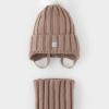 Комплект детский: шапка и снуд из полушерсти. Шапка на завязках с синтепоновым утеплителем. Подклад из натурального хлопка. Полностью закрывает голову, уши и шею, защищая ребёнка от холодного воздуха и ветра. На макушке помпон. Снуд с отворотом. Изделие сохраняет форму и стойкий цвет после многочисленных стирок.