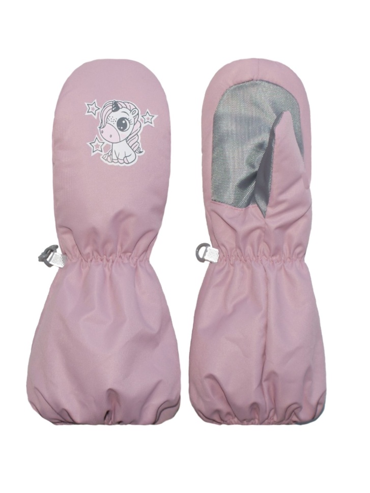 Зимние полукраги для девочки из мембранной ткани,с утеплителем из тинсулейта, на флисовой подкладке. Детали ладони и большого пальца усилены износостойкой вставкой. Декорированы термопринтом.