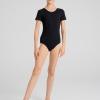 Боди гимнастический с коротким рукавом для девочки. Высокое содержание хлопка. Эластан обеспечивает максимальную свободу движения и комфорт. Спортивный купальник разработан специально для профессиональных занятий: для гимнастики, хореографии, танцев. Одобрен тренерами.