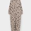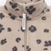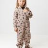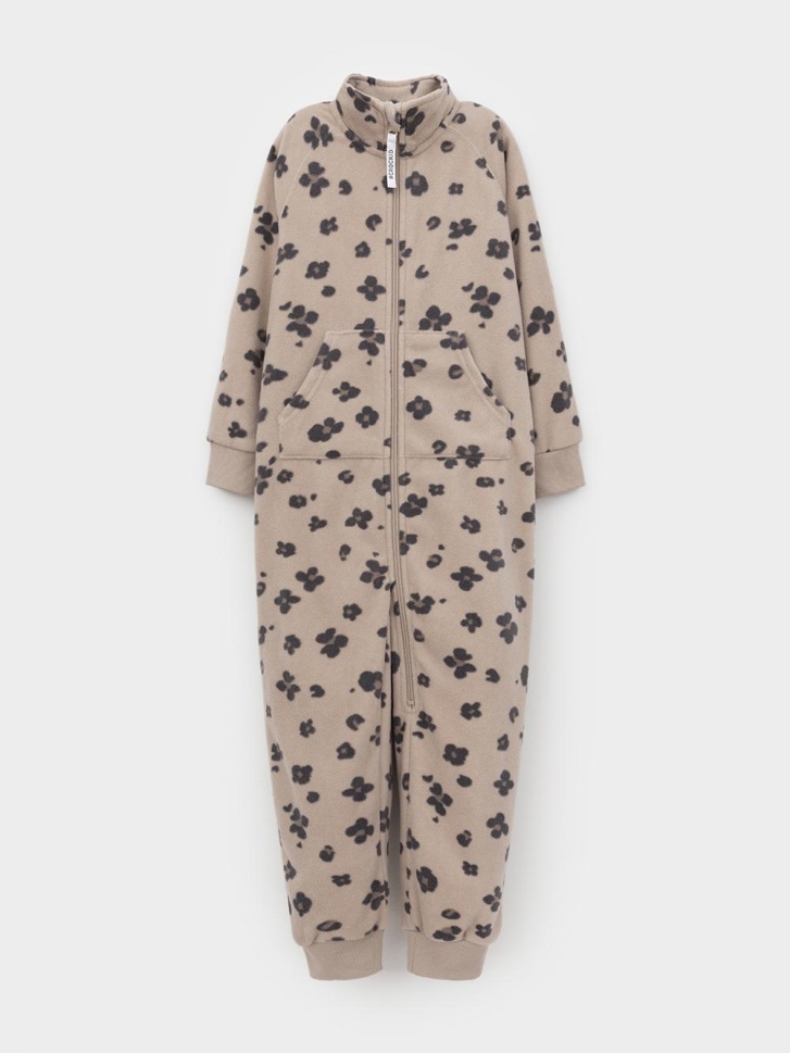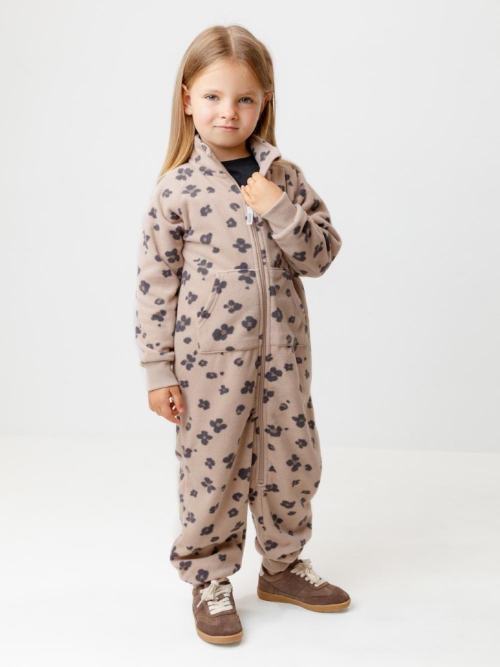 Флисовый комбинезон для девочки с высоким воротником. Застёгивается на удлинённую молнию с мягкой защитой шеи и подбородка. Рукава и низ изделия на манжетах из трикотажа в рубчик. Эластичная резинка по спинке обеспечивает идеальную посадку. Спереди удобный карман-кенгуру. Оригинальная набивка выполнена из стойких гипоаллергенных текстильных красителей. Комбинезон сохраняет цвет и форму после многократных стирок.