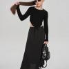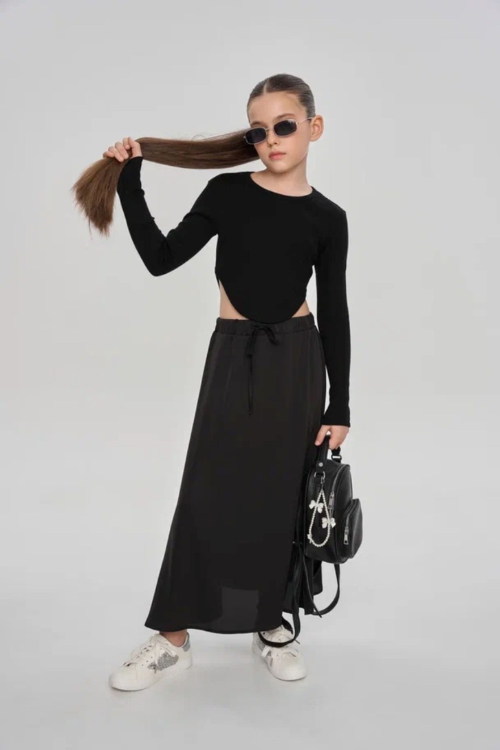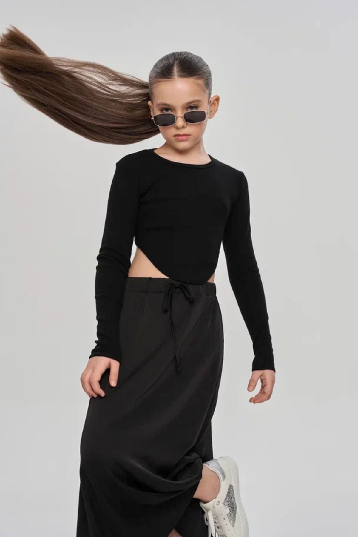 1040-25-25 Лонгслив в рубчик с прогнутым низом (цв. черный)