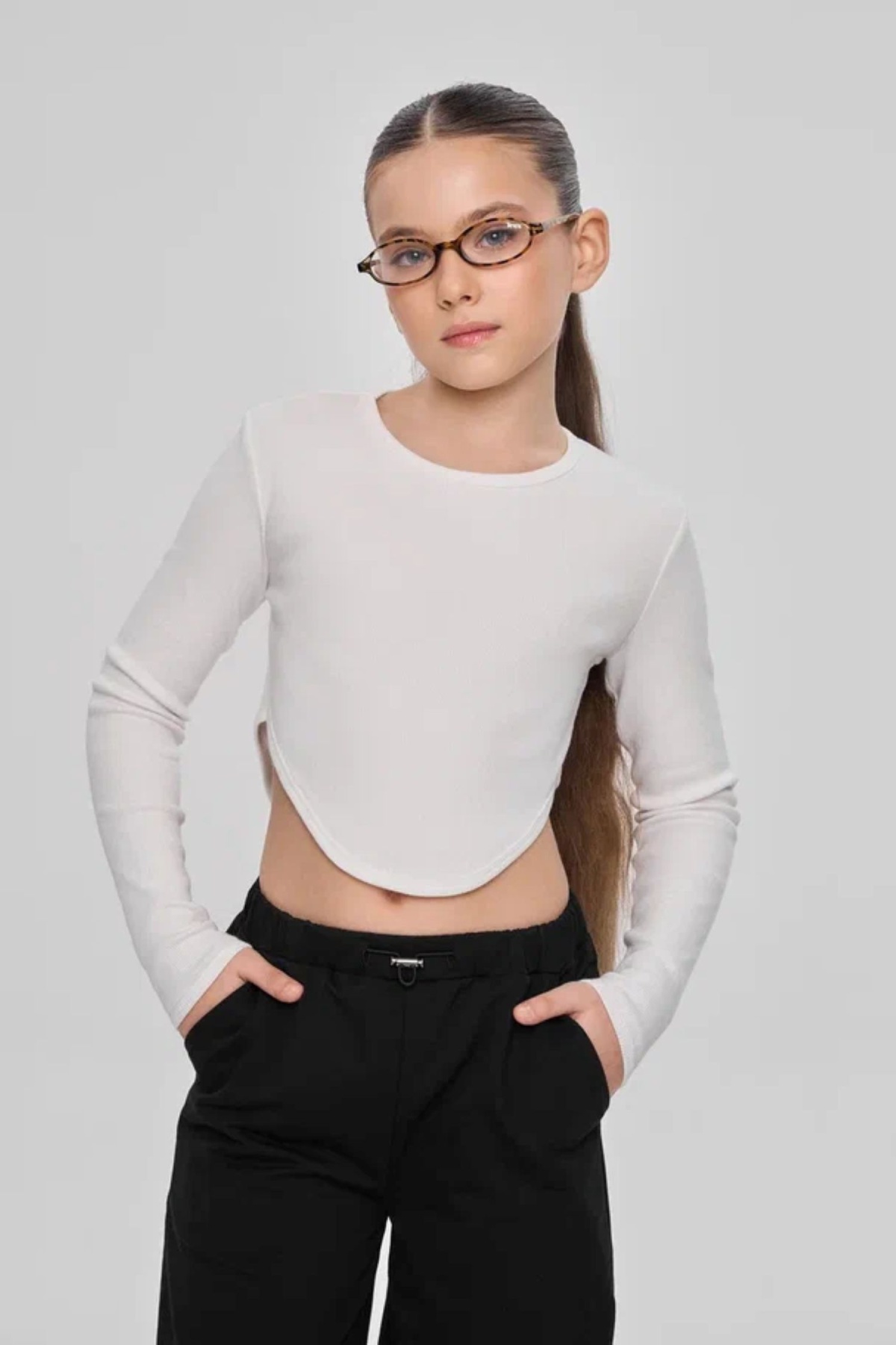 1040-25-25 Лонгслив в рубчик с прогнутым низом (цв. молочный)
