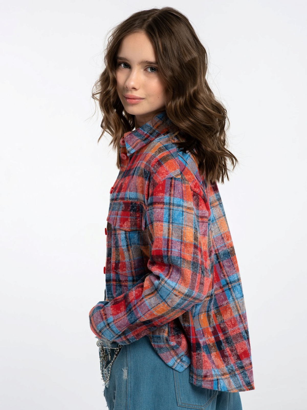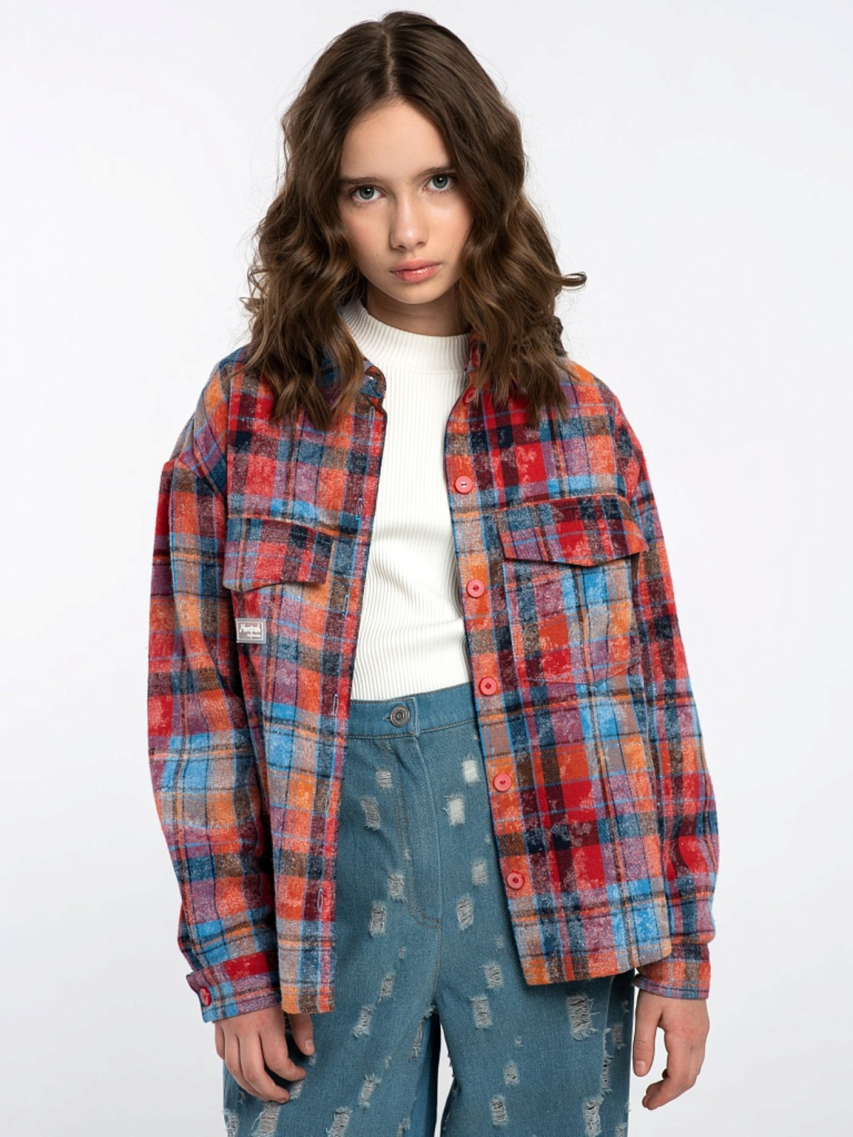 Рубашка с ярким клетчатым принтом идеально сочетается с джинсами, свитшотами и свободными штанами. Модель свободного кроя — можно носить расстегнутой поверх футболки или заправлять в штаны. Длинные рукава с манжетами на пуговицах — можно закатывать, чтобы добавить дерзости.