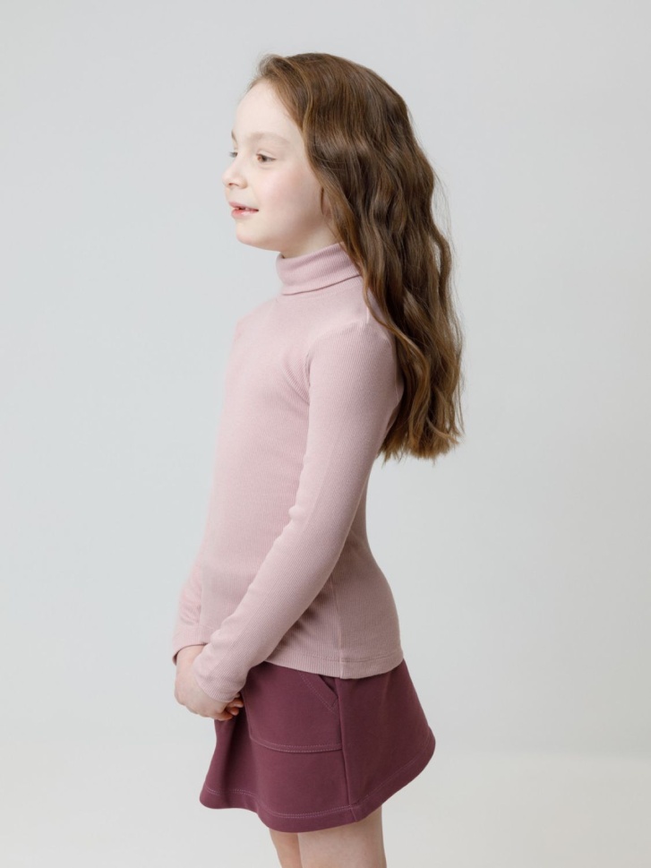 Однотонная водолазка из эластичного трикотажа в рубчик для девочки. Изделие сохраняет форму и стойкий цвет после многочисленных стирок и идеально подходит на каждый день. Все трикотажные полотна производятся в соответствии с нормами швейцарского сертификата ЭкоТекс.