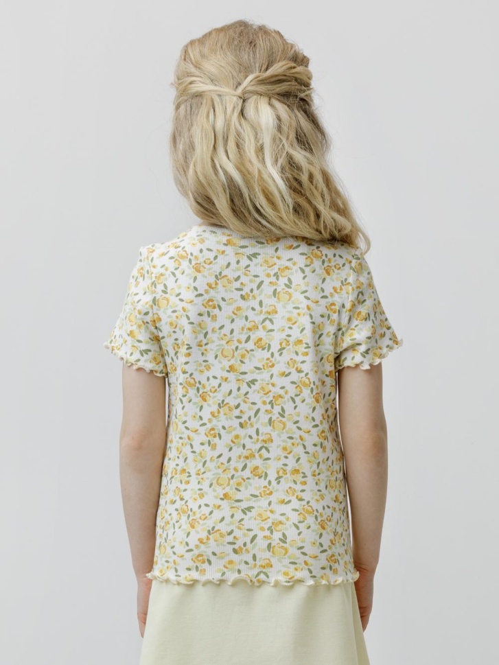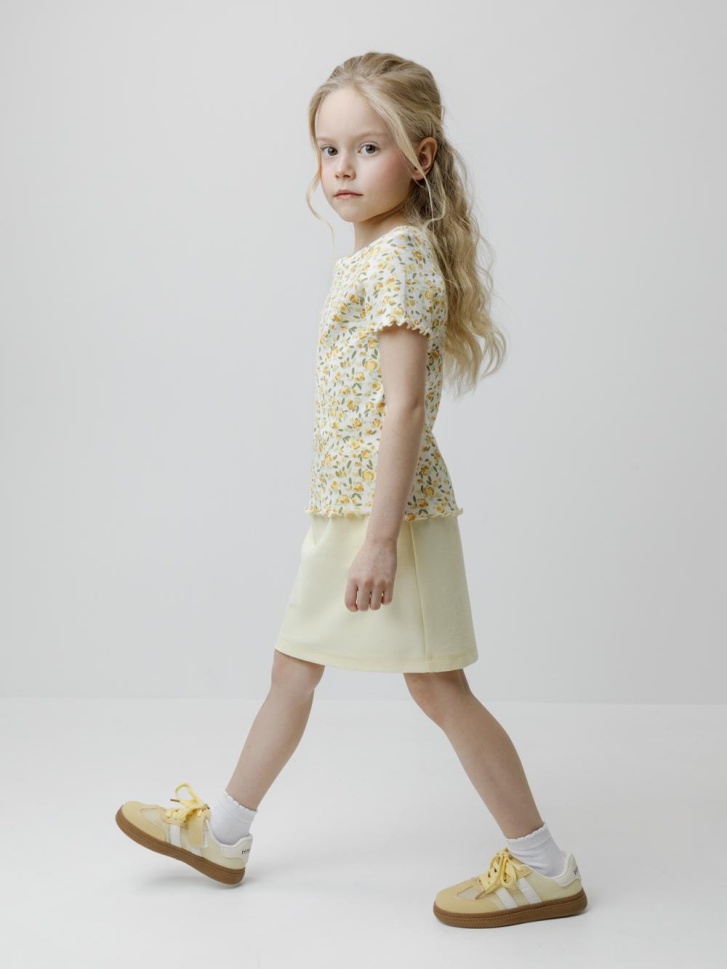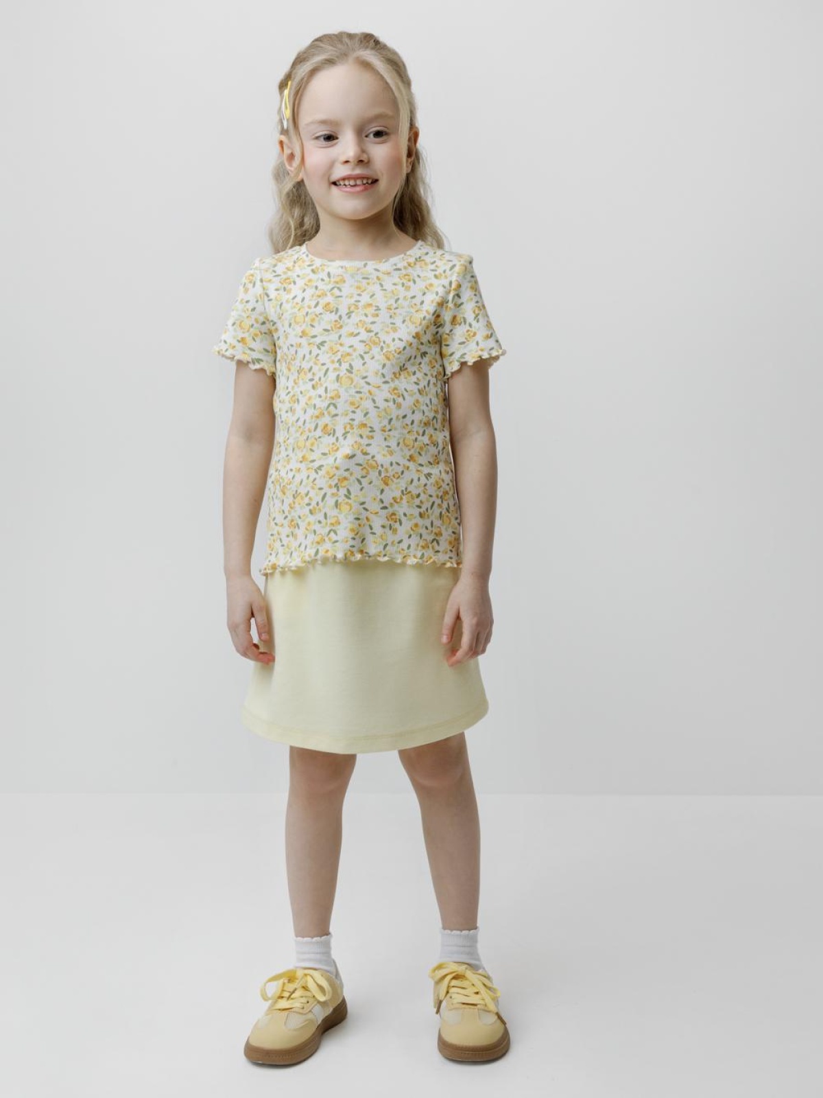 Футболка для девочки из эластичного трикотажного полотна в рубчик. Изделие сохраняет цвет и форму после многократных стирок. Все трикотажные полотна производятся в соответствии с нормами швейцарского сертификата ЭкоТекс.