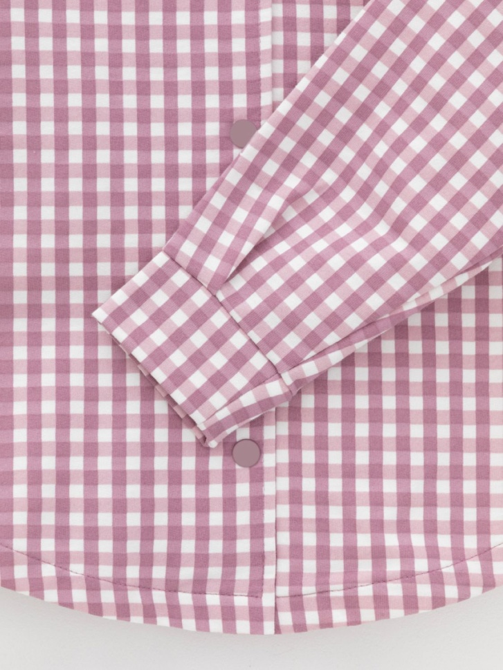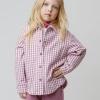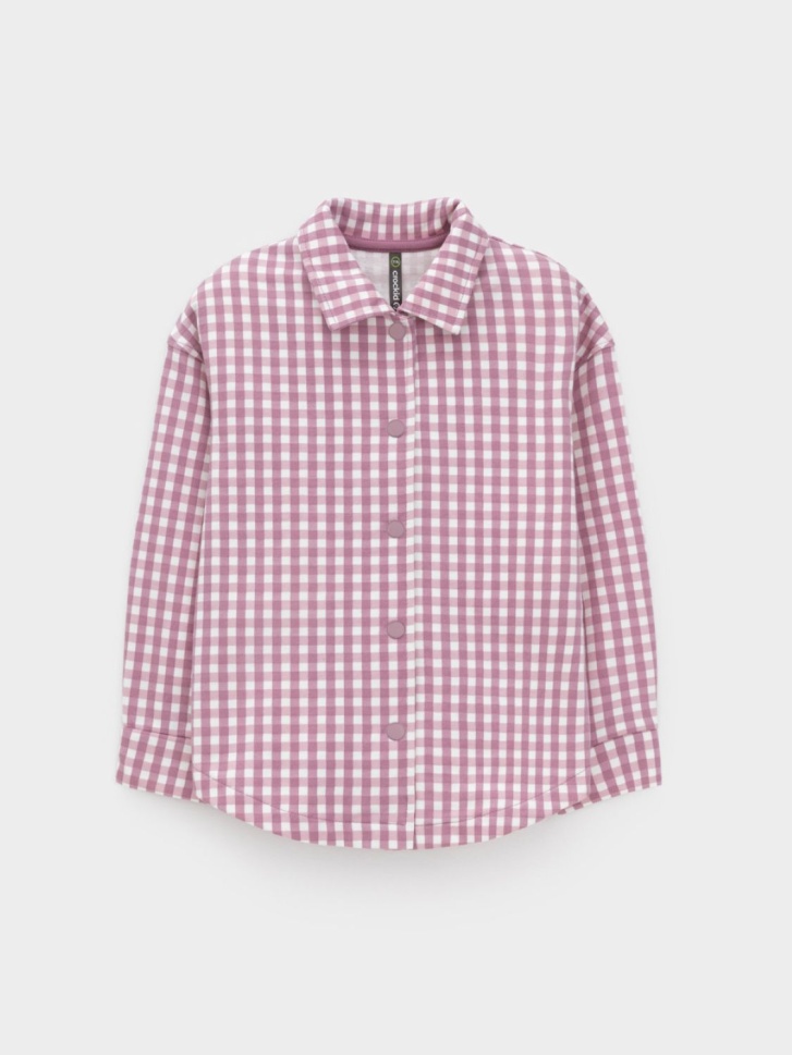 Свободная трикотажная рубашка для девочки из мягкого петельчатого футера. Застёгивается на кнопки. Модель с закругленным низом и спущенным плечом. Рисунок в клетку выполнен из стойких текстильных гипоаллергенных красителей. Изделие сохраняет цвет и форму после многократных стирок. Все трикотажные полотна производятся в соответствии с нормами швейцарского сертификата ЭкоТекс.