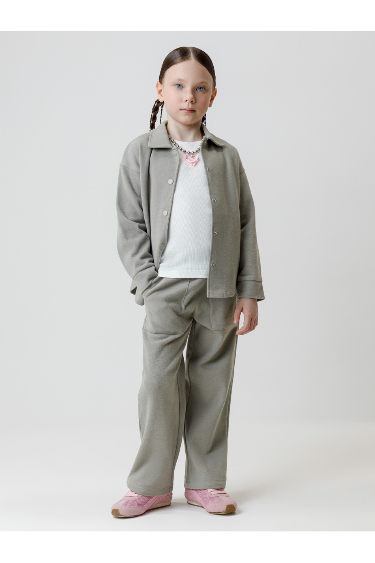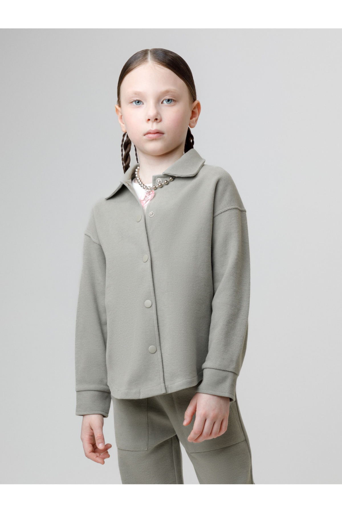 Рубашка свободного кроя для девочки из мягкого трикотажа селаник с peach эффектом. Peach эффект достигается с помощью технологии обработки полотна, при которой на его поверхности создаётся лёгкий ворс, напоминающий нежную текстуру кожи персика. Модель с закруглённым низом и спущенным плечом. Застёгивается на пуговицы. Изделие сохраняет цвет и форму после многократных стирок. Все трикотажные полотна производятся в соответствии с нормами швейцарского сертификата ЭкоТекс.