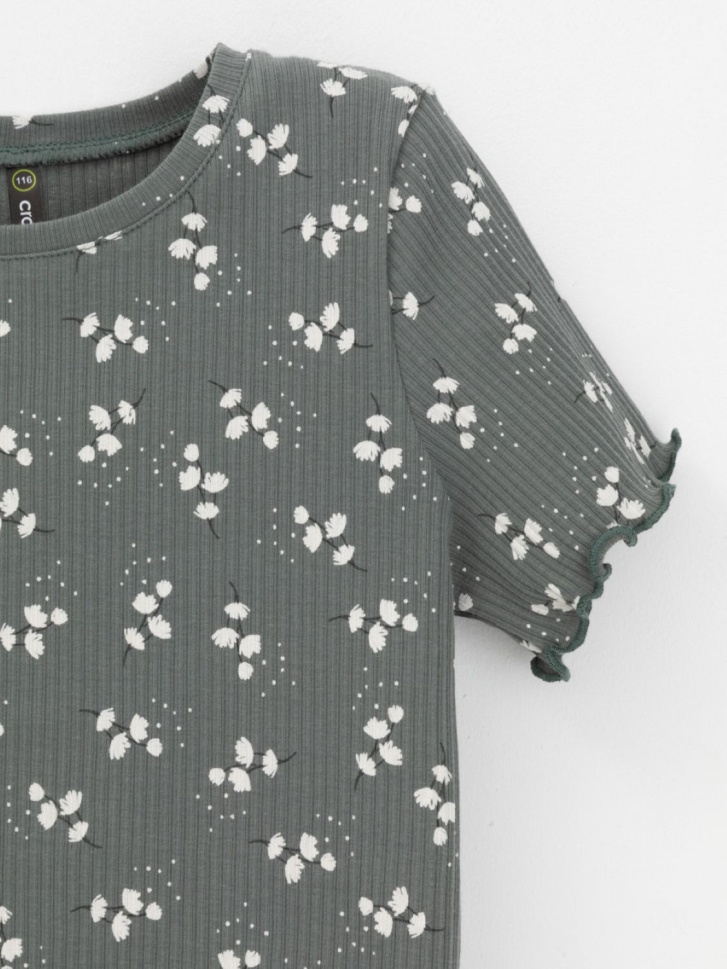 Футболка для девочки из эластичного трикотажа в рубчик. Оригинальный рисунок выполнен из стойких текстильных гипоаллергенных красителей. Изделие сохраняет цвет и форму после многократных стирок. Все трикотажные полотна производятся в соответствии с нормами швейцарского сертификата ЭкоТекс.