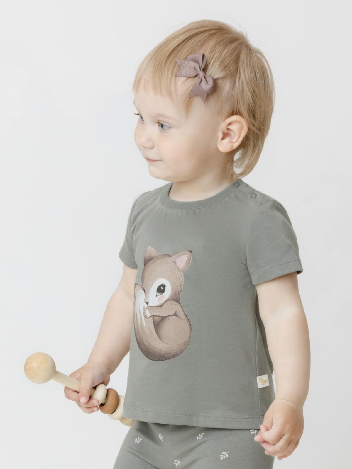 Футболка для девочки из гладкого трикотажа, произведённого из высококачественного натурального хлопка. Застёгивается на кнопки. Оригинальный принт выполнен из стойких текстильных гипоаллергенных красителей. Изделие сохраняет цвет и форму после многократных стирок. Все трикотажные полотна производятся в соответствии с нормами швейцарского сертификата ЭкоТекс.