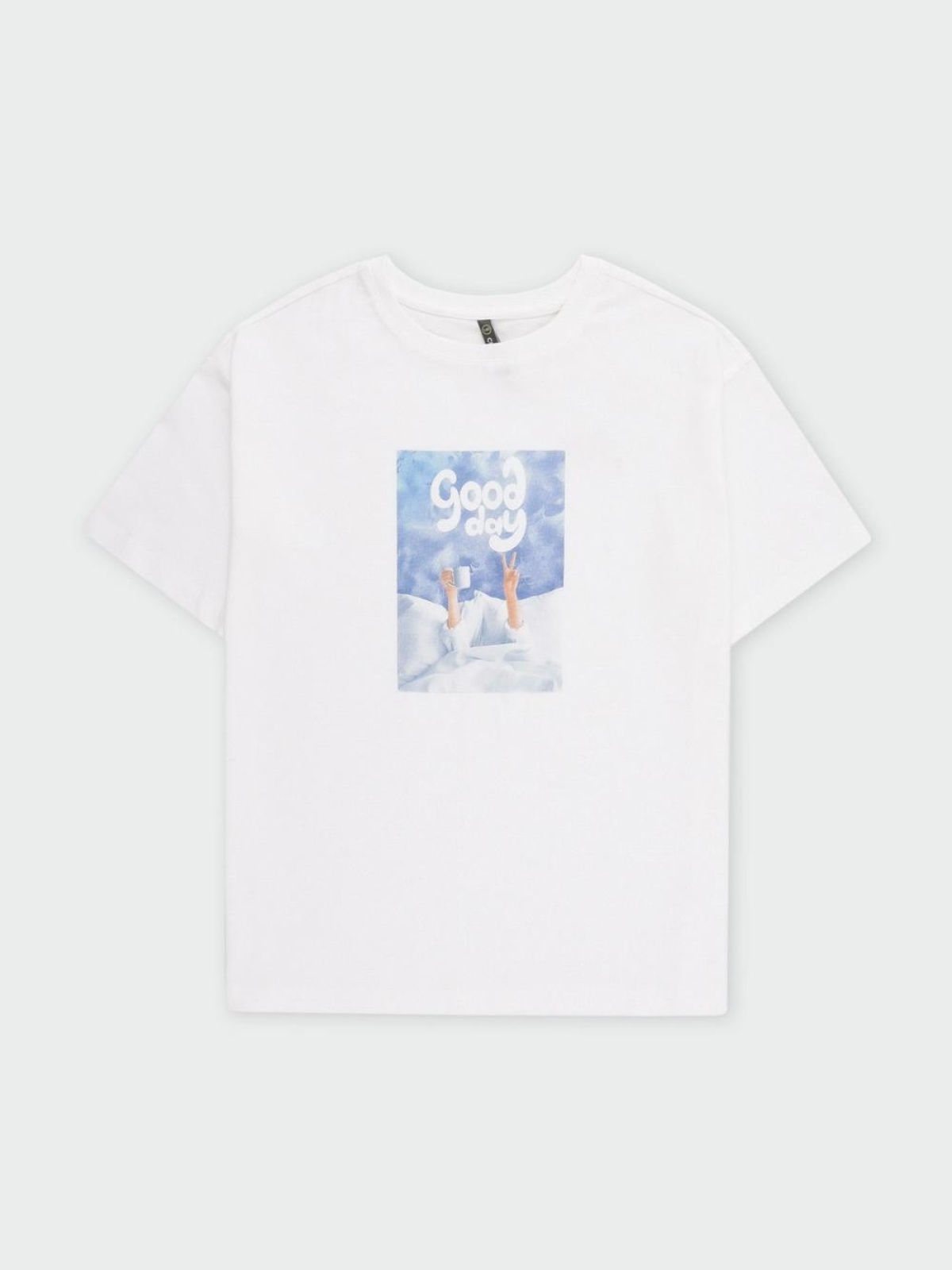 Футболка для девочки из гладкого трикотажа, произведённого из высококачественного натурального хлопка. Оригинальный принт выполнен из стойких текстильных гипоаллергенных красителей. Изделие сохраняет цвет и форму после многократных стирок. Все трикотажные полотна производятся в соответствии с нормами швейцарского сертификата ЭкоТекс.