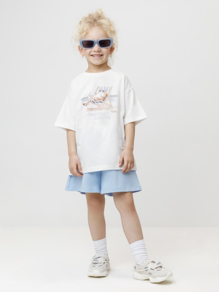 Футболка для девочки из высококачественного трикотажного полотна. Оригинальный рисунок выполнен из стойких текстильных гипоаллергенных красителей. Изделие сохраняет цвет и форму после многократных стирок. Все трикотажные полотна производятся в соответствии с нормами швейцарского сертификата ЭкоТекс.