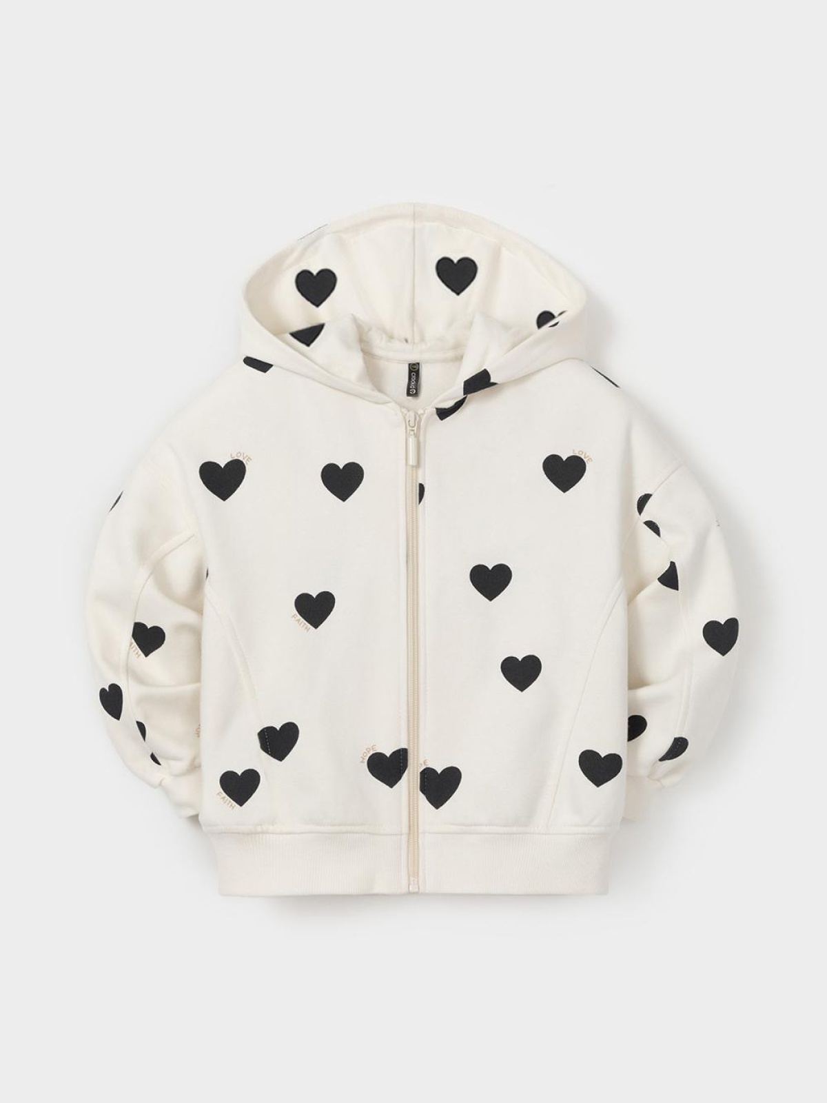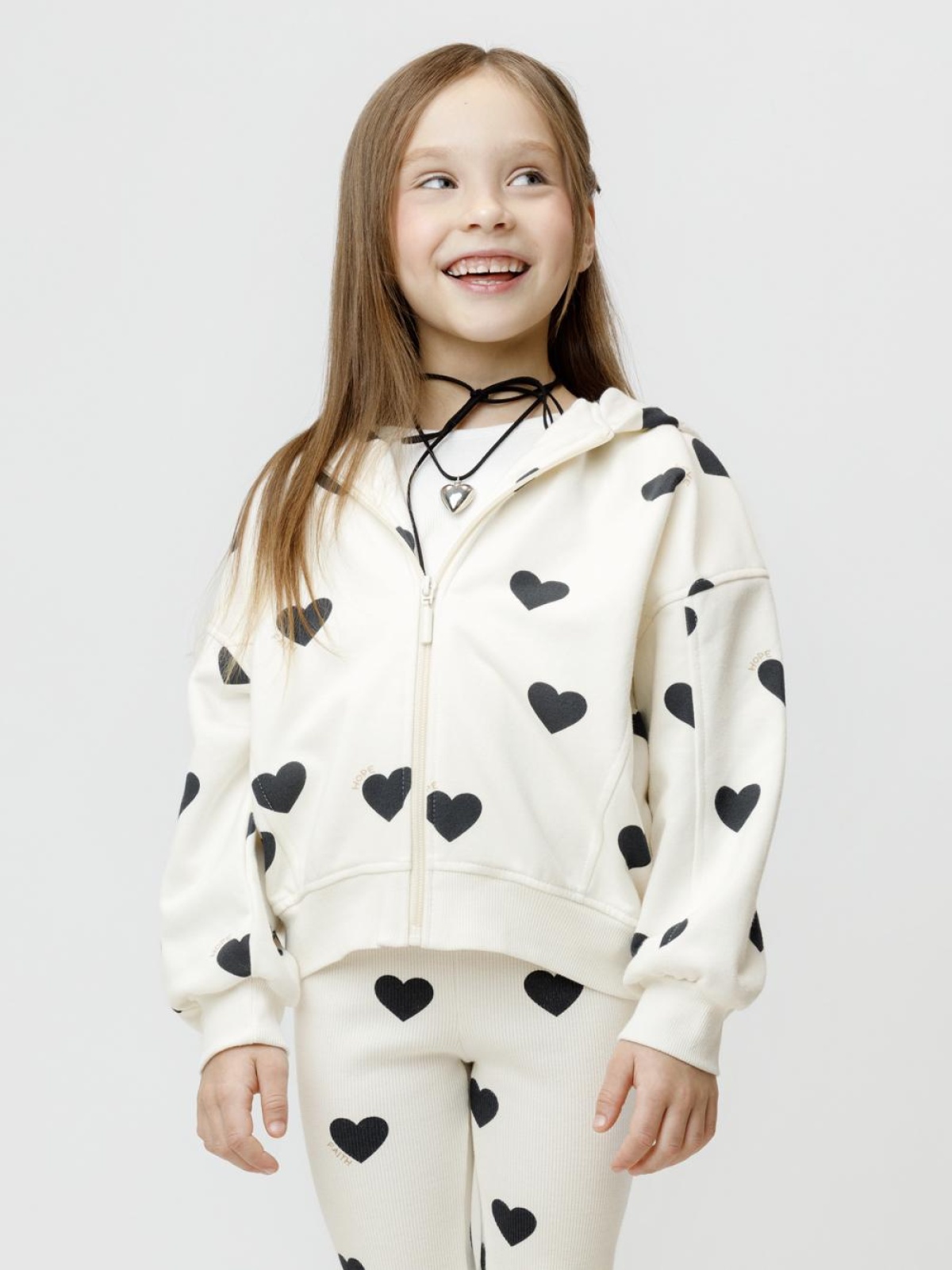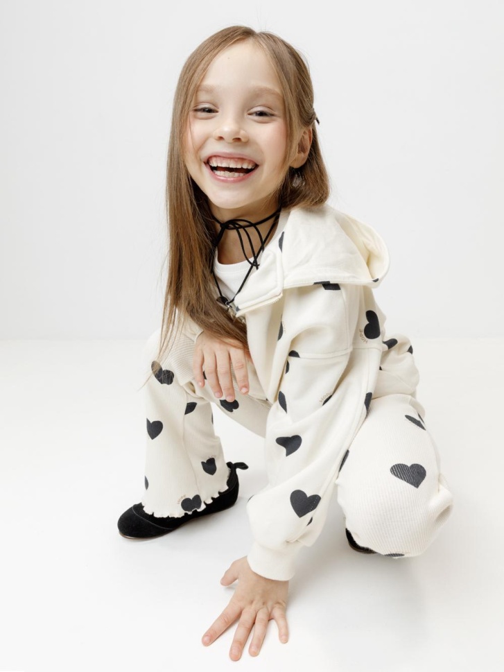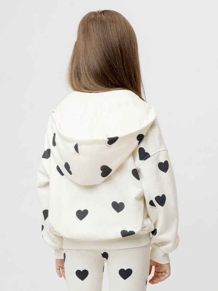 Трикотажная толстовка с капюшоном для девочки. Изготовлена из мягкого футера с оригинальным рисунком. В составе 80% натурального хлопка и 20% полиэстера, при этом полиэстер ввязан внутрь по особой технологии и не соприкасается с кожей. Застёгивается на молнию. Эластичные манжеты и пояс выполнены из полотна в рубчик. Изделие сохраняет цвет и форму после многократных стирок. Все трикотажные полотна производятся в соответствии с нормами швейцарского сертификата ЭкоТекс.