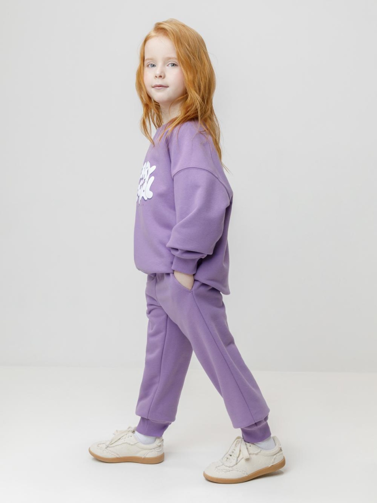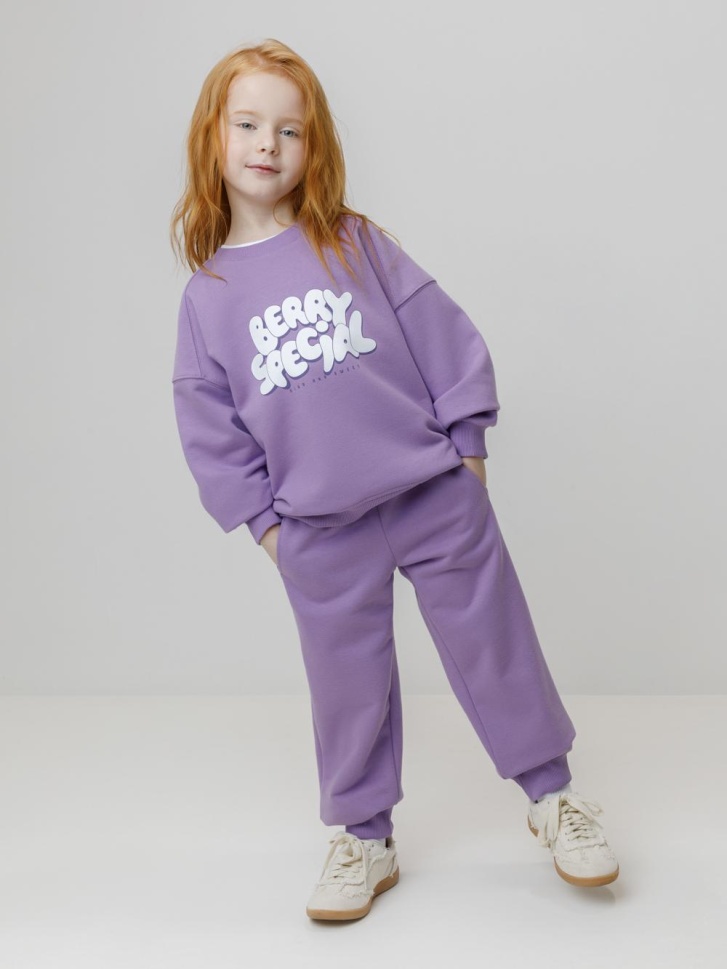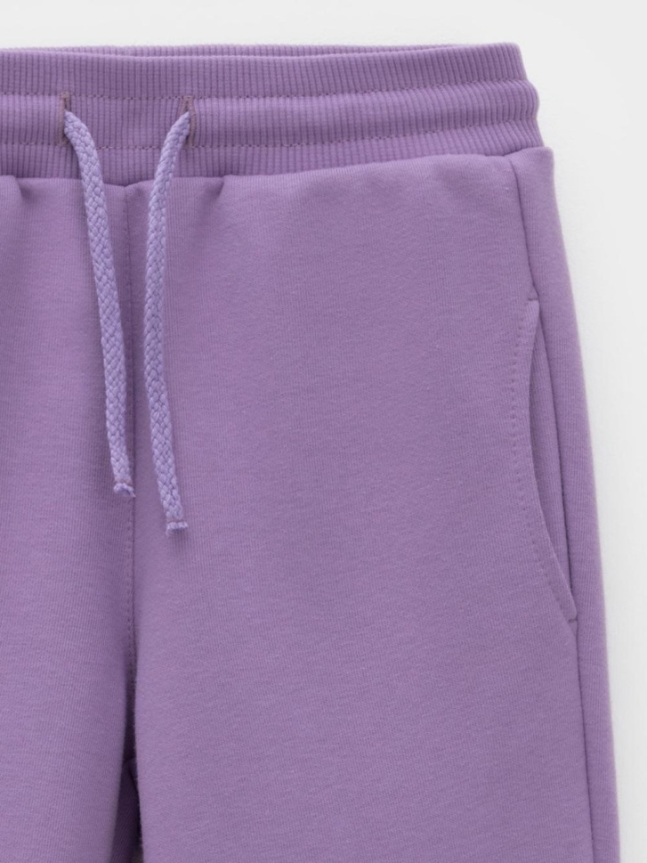 Брюки однотонные для девочки. Изготовлены из мягкого петельчатого футера трёхнитки диагональ. В составе 80% натурального хлопка и 20% полиэстера, при этом полиэстер ввязан внутрь по особой технологии и не соприкасается с кожей. Модель с эластичным поясом на резинке. Низ на манжетах. Изделие сохраняет цвет и форму после многократных стирок. Все трикотажные полотна производятся в соответствии с нормами швейцарского сертификата ЭкоТекс.