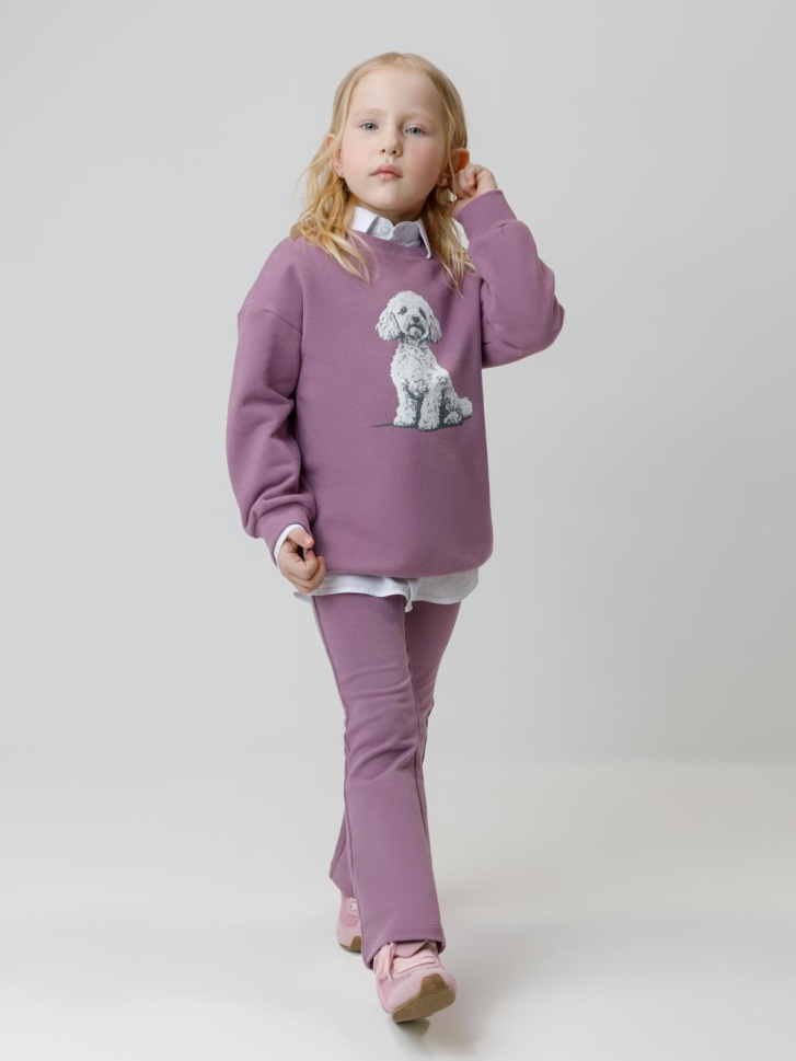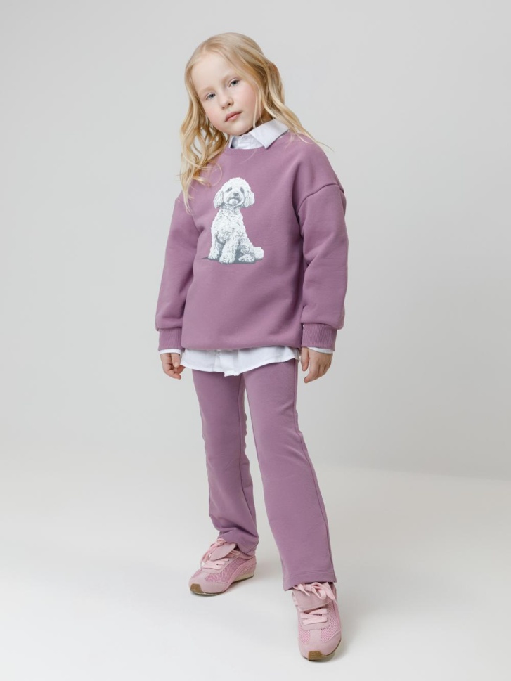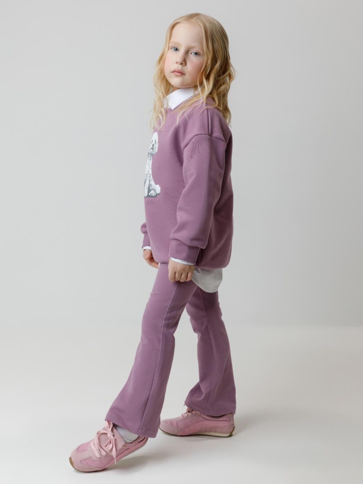 Брюки из мягкого эластичного футера для девочки. Модель с поясом на резинке. Изделие сохраняет цвет и форму после многократных стирок. Все трикотажные полотна производятся в соответствии с нормами швейцарского сертификата ЭкоТекс.