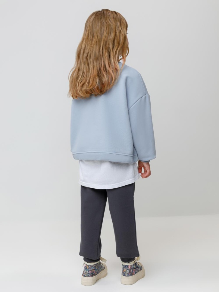Брюки для девочки из мягкого петельчатого футера. В составе 80% натурального хлопка и 20% полиэстера, при этом полиэстер ввязан внутрь по особой технологии и не соприкасается с кожей. Модель с эластичным поясом на резинке регулируется по ширине с помощью шнурка. Низ на манжетах. Два кармана по бокам. Все трикотажные полотна производятся в соответствии с нормами швейцарского сертификата ЭкоТекс.