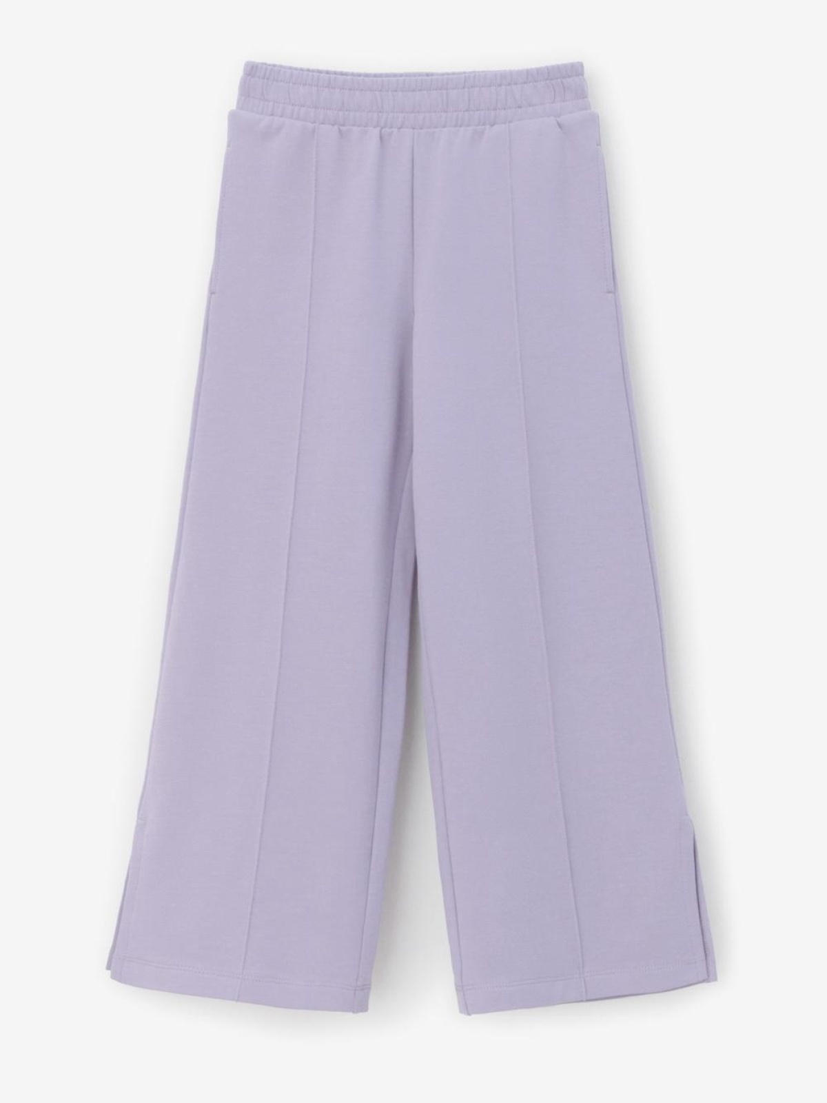 Однотонные брюки со стрелками для девочки. Изготовлены из мягкого трикотажа футер диагональ. Модель с эластичным поясом на резинке. Снизу по бокам разрезы. Изделие сохраняет цвет и форму после многократных стирок. Все трикотажные полотна производятся в соответствии с нормами швейцарского сертификата ЭкоТекс.