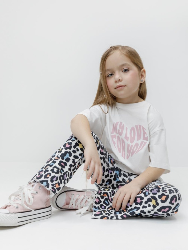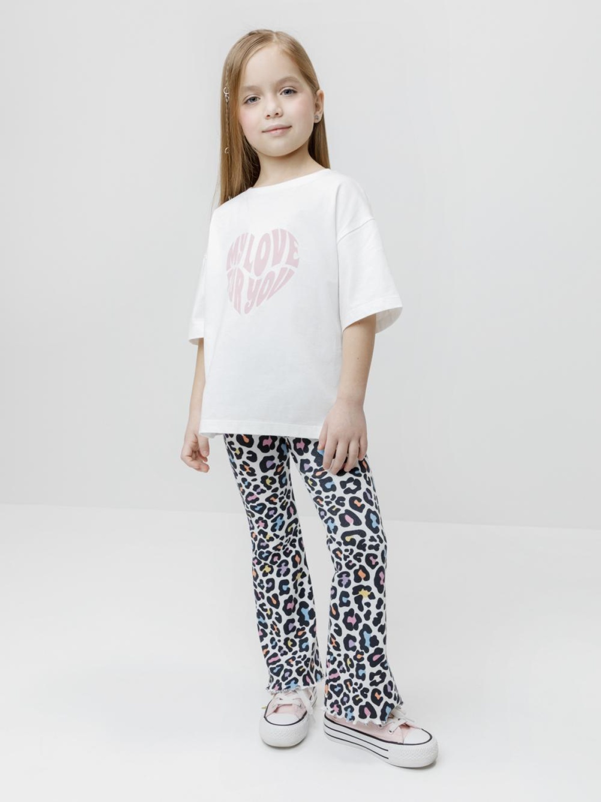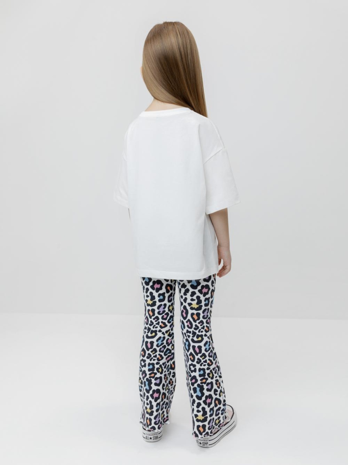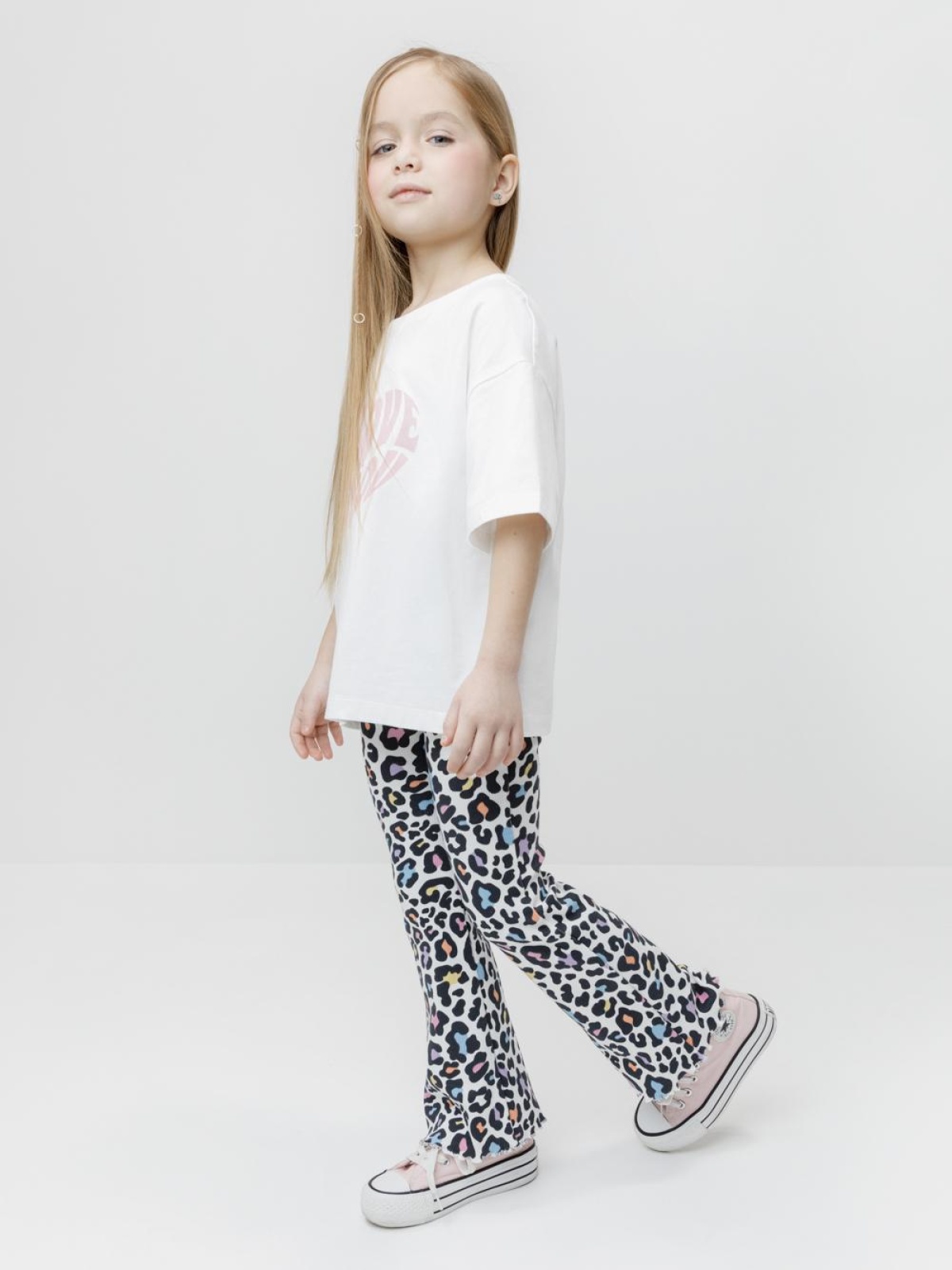 Брюки для девочки из эластичного трикотажа в рубчик. Пояс на резинке. Изделие сохраняет цвет и форму после многократных стирок. Все трикотажные полотна производятся в соответствии с нормами швейцарского сертификата ЭкоТекс.
