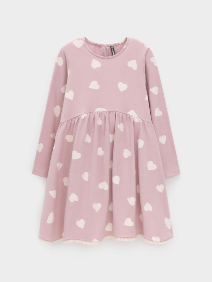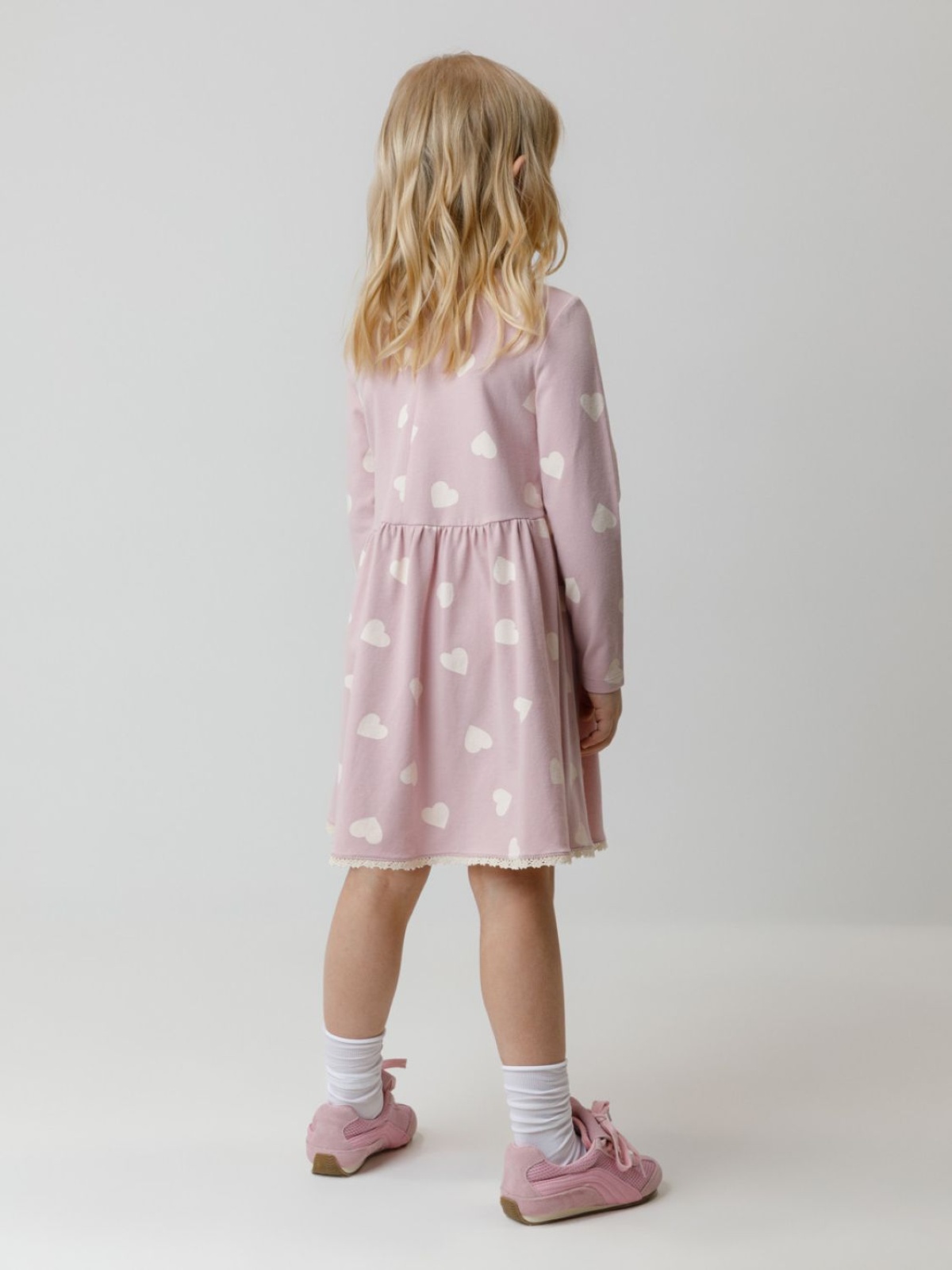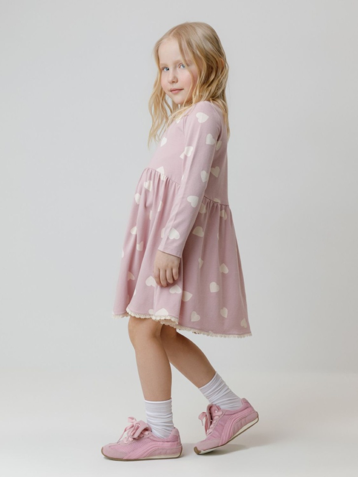 Платье для девочки с длинными рукавами из высококачественного гладкого трикотажа. Для удобства одевания на спинке платье застёгивается на пуговицу. Украшено кружевом. Платье сохраняет форму и стойкий цвет после многочисленных стирок и идеально подходит на каждый день. Все трикотажные полотна производятся в соответствии с нормами швейцарского сертификата ЭкоТекс.
