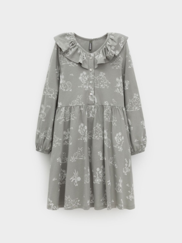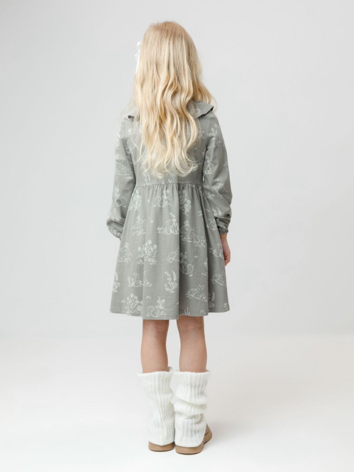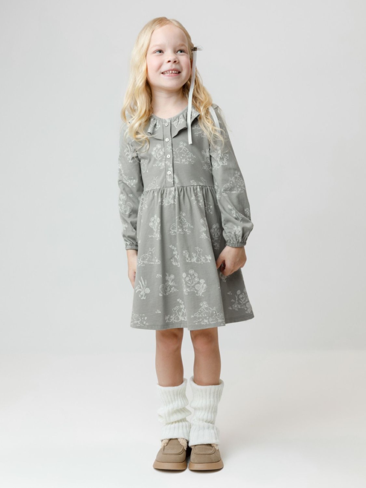 Платье для девочки с длинными рукавами из гладкого хлопкового трикотажа. Для удобства одевания спереди застёгивается на пуговицы. Платье сохраняет форму и стойкий цвет после многочисленных стирок и идеально подходит на каждый день. Все трикотажные полотна производятся в соответствии с нормами швейцарского сертификата ЭкоТекс.