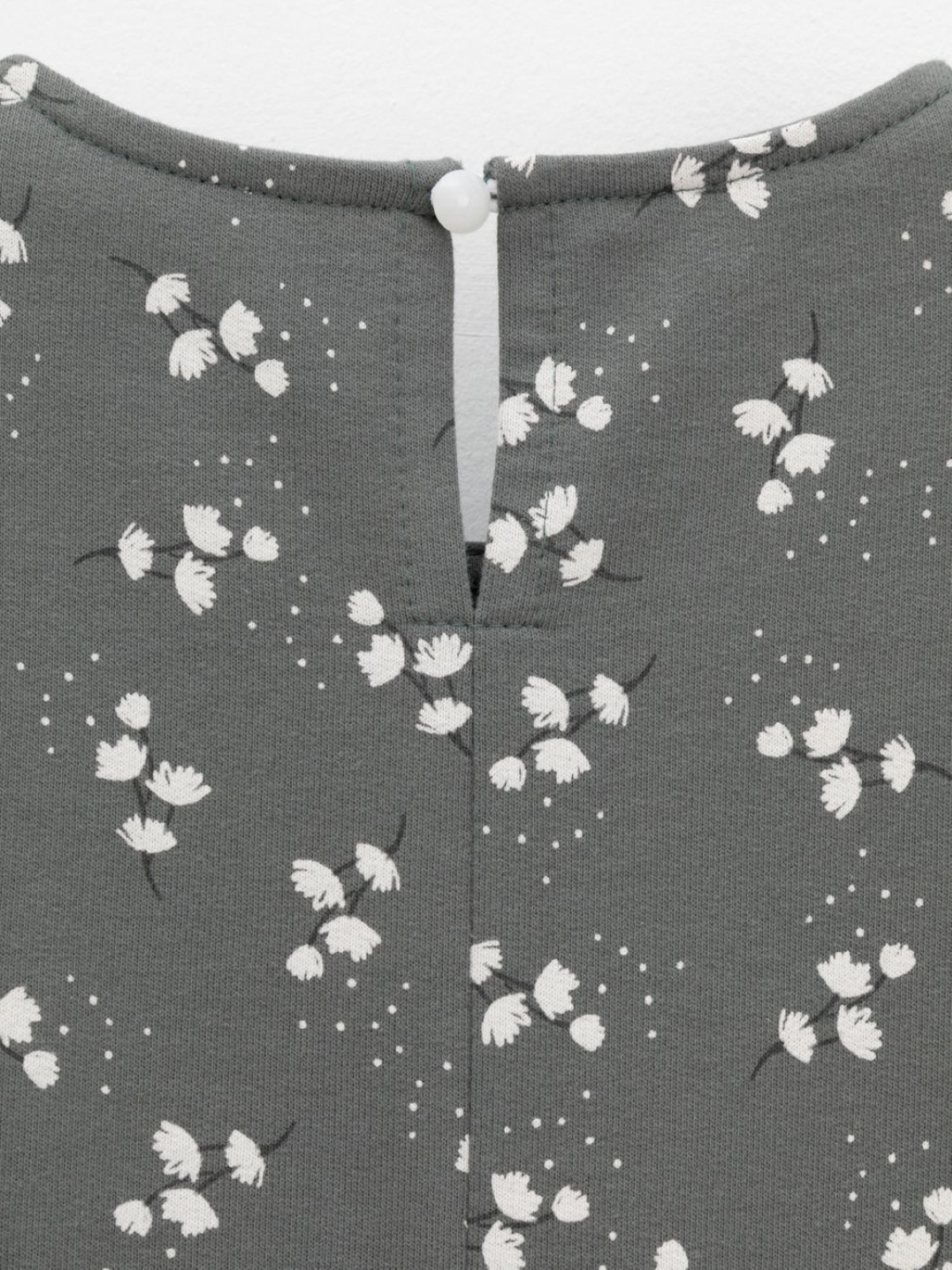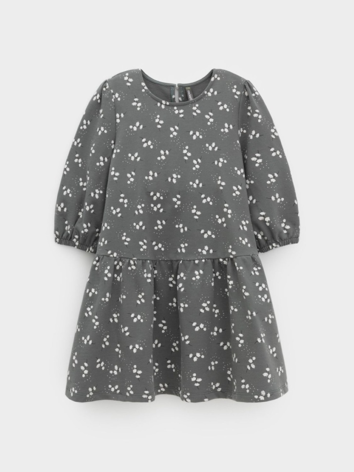 Платье для девочки с короткими рукавами из мягкого петельчатого трикотажа. Для удобства одевания платье на спинке застёгивается на пуговицу. Платье сохраняет форму и стойкий цвет после многочисленных стирок и идеально подходит на каждый день. Все трикотажные полотна производятся в соответствии с нормами швейцарского сертификата ЭкоТекс.