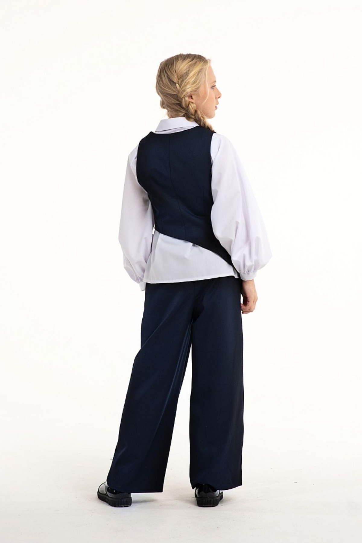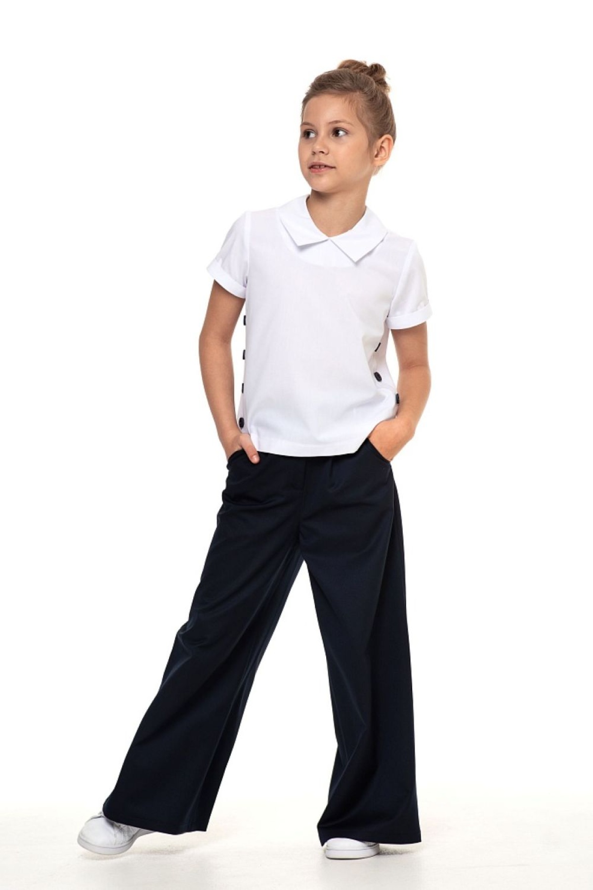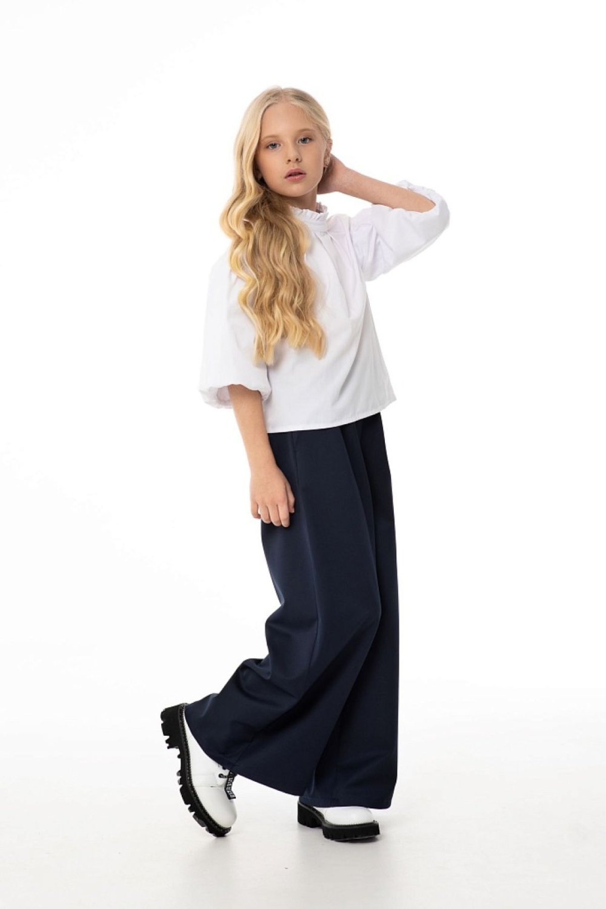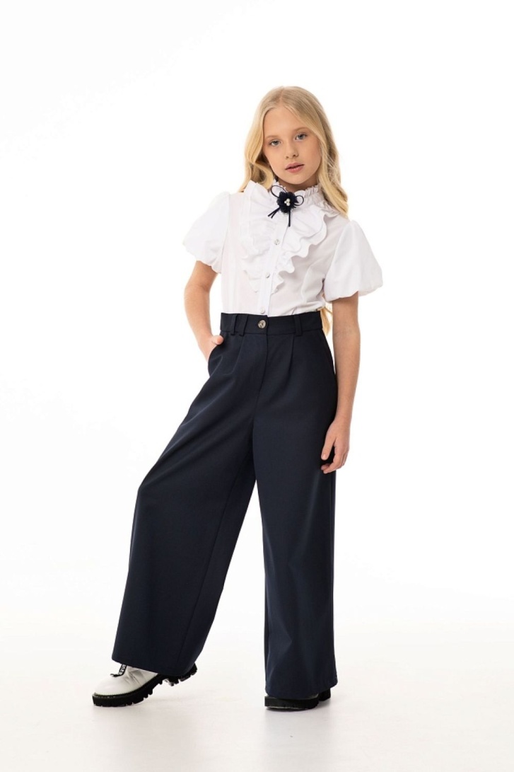 Широкие синие школьные брюки для девочек станут отличной основой стильных динамичных образов. Базовые брюки актуального свободного кроя, легкий клёш от бедра. Застежка молния + пуговка. Двусторонняя регулировка по талии гарантирует идеальную посадку по фигуре. Свободные школьные брюки уже стали классикой гардероба школьниц любого возраста. Не удивительно, ведь эти детские брюки можно носить и в школу, и вне её стен. Девочки с легкостью внедряют их в свой повседневный гардероб. Синие палаццо для девочек выполнены из премиальной костюмной ткани, состав: 35% вискоза, 65% полиэфирные волокна. Прочный и устойчивый к износу материал, отвечает всем требованиям гигроскопичности и воздухопроницаемости - позволяет коже «дышать» даже при длительной носке. Легко выдерживает частые стирки без потери качества и внешнего вида, не скатывается и сохраняет форму. Ткань идеальна для школьных костюмов, так как практически не мнется; гигроскопична - отлично впитывает и испаряет лишнюю влагу; воздухопроницаема - обеспечивает комфо
