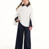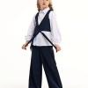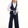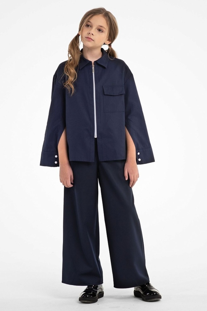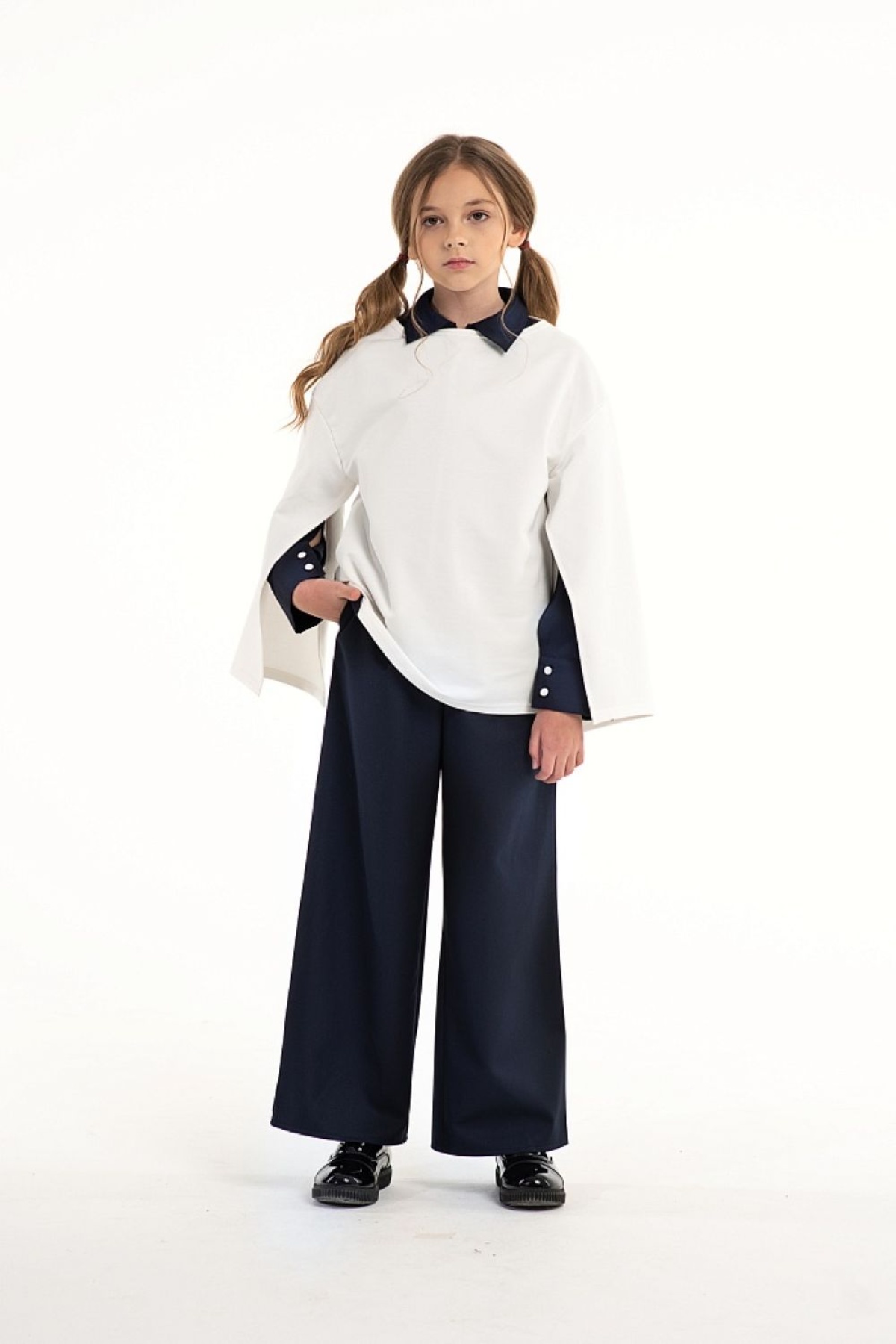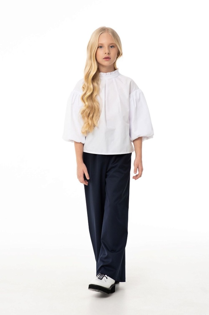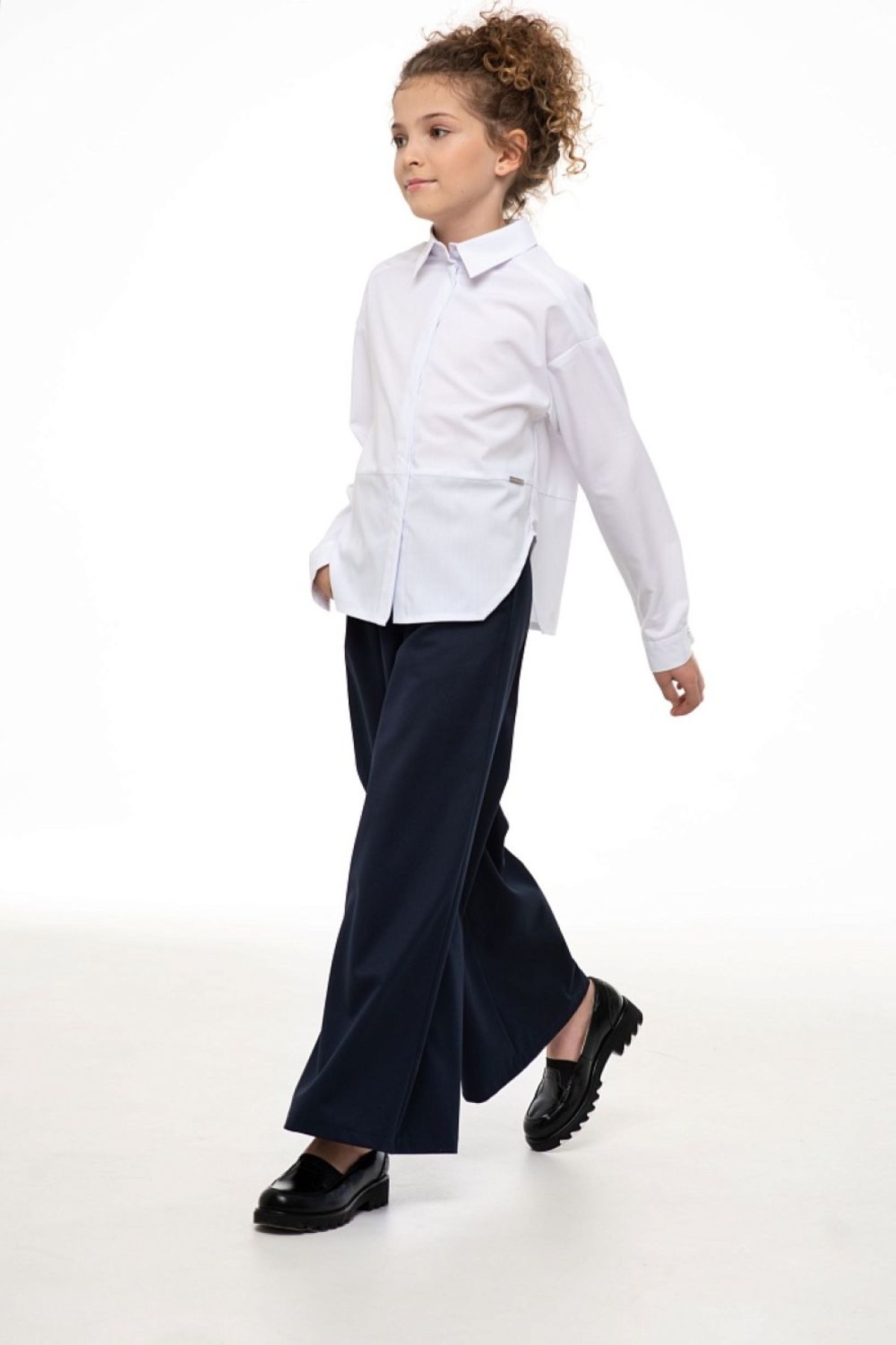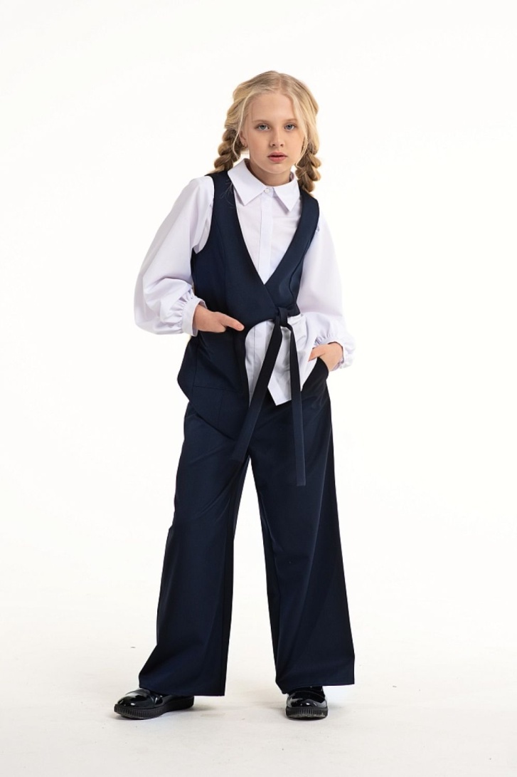 Широкие синие школьные брюки для девочек станут отличной основой стильных динамичных образов. Базовые брюки актуального свободного кроя, легкий клёш от бедра. Застежка молния + пуговка. Двусторонняя регулировка по талии гарантирует идеальную посадку по фигуре. Свободные школьные брюки уже стали классикой гардероба школьниц любого возраста. Не удивительно, ведь эти детские брюки можно носить и в школу, и вне её стен. Девочки с легкостью внедряют их в свой повседневный гардероб. Синие палаццо для девочек выполнены из премиальной костюмной ткани, состав: 35% вискоза, 65% полиэфирные волокна. Прочный и устойчивый к износу материал, отвечает всем требованиям гигроскопичности и воздухопроницаемости - позволяет коже «дышать» даже при длительной носке. Легко выдерживает частые стирки без потери качества и внешнего вида, не скатывается и сохраняет форму. Ткань идеальна для школьных костюмов, так как практически не мнется; гигроскопична - отлично впитывает и испаряет лишнюю влагу; воздухопроницаема - обеспечивает комфо