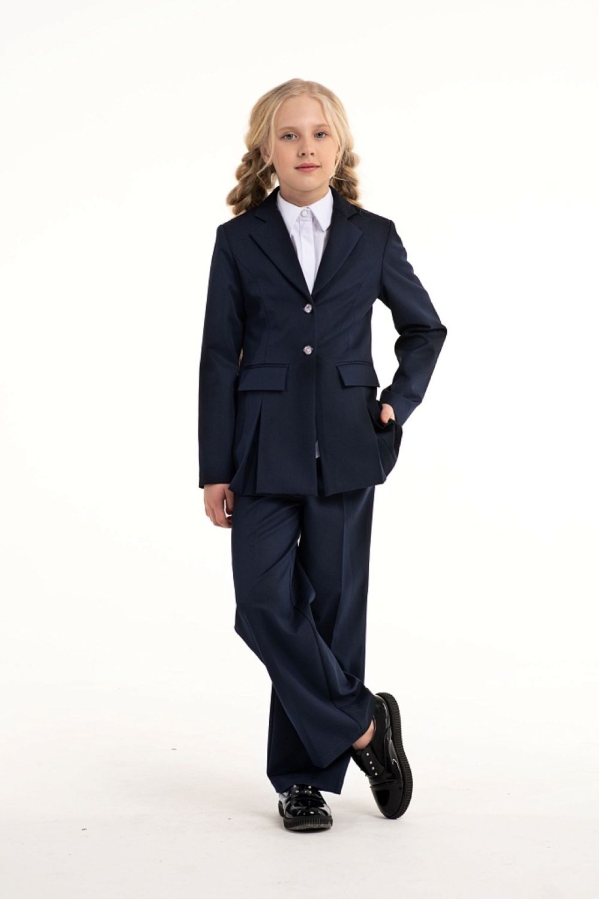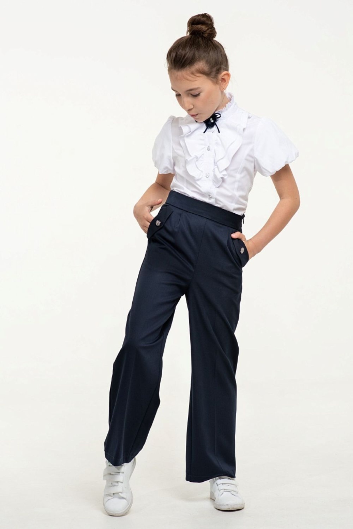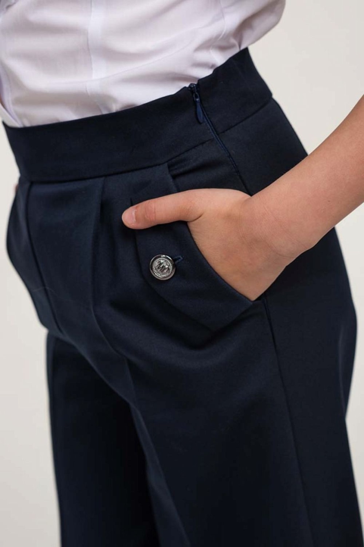 Синие школьные брюки для девочки выполнены из премиальной костюмной ткани, состав: 35% вискоза, 65% полиэфирные волокна. Прочный и устойчивый к износу материал, отвечает всем требованиям гигроскопичности и воздухопроницаемости - позволяет коже «дышать» даже при длительной носке. Легко выдерживает частые стирки без потери качества и внешнего вида, не скатывается и сохраняет форму. Ткань идеальна для школьных костюмов, так как практически не мнется; гигроскопична - отлично впитывает и испаряет лишнюю влагу; воздухопроницаема - обеспечивает комфорт и гигиеничность; мягкая, приятная к коже; не собирает статическое электричество и не липнет.