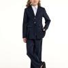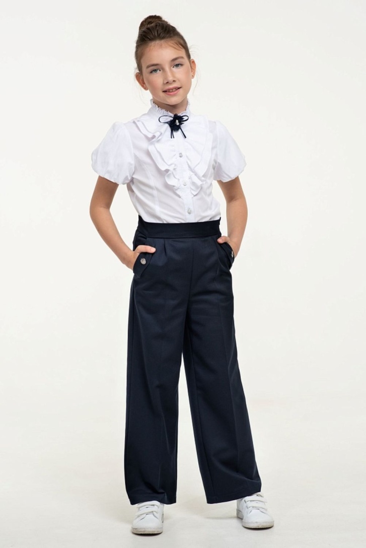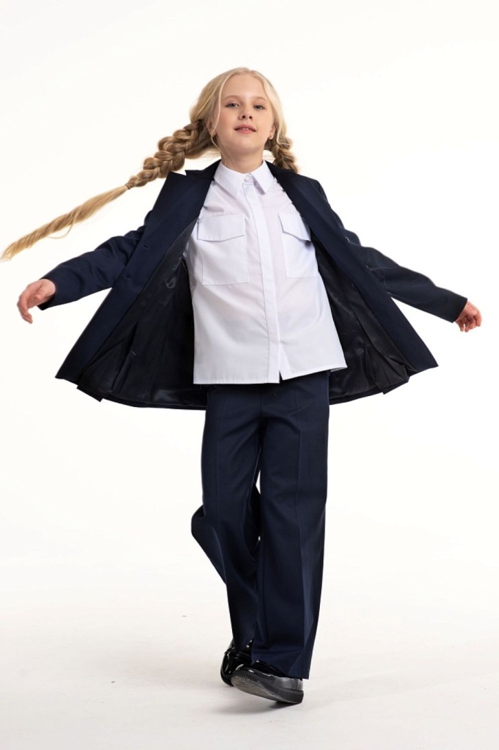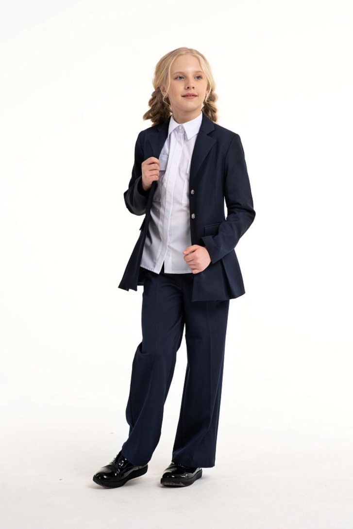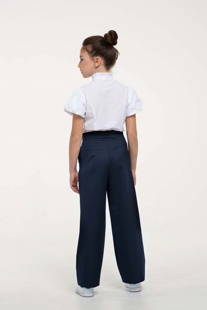 Синие школьные брюки для девочки выполнены из премиальной костюмной ткани, состав: 35% вискоза, 65% полиэфирные волокна. Прочный и устойчивый к износу материал, отвечает всем требованиям гигроскопичности и воздухопроницаемости - позволяет коже «дышать» даже при длительной носке. Легко выдерживает частые стирки без потери качества и внешнего вида, не скатывается и сохраняет форму. Ткань идеальна для школьных костюмов, так как практически не мнется; гигроскопична - отлично впитывает и испаряет лишнюю влагу; воздухопроницаема - обеспечивает комфорт и гигиеничность; мягкая, приятная к коже; не собирает статическое электричество и не липнет.