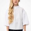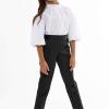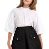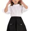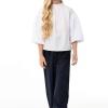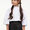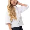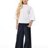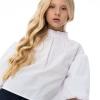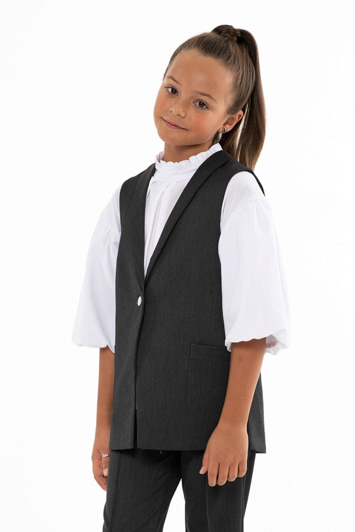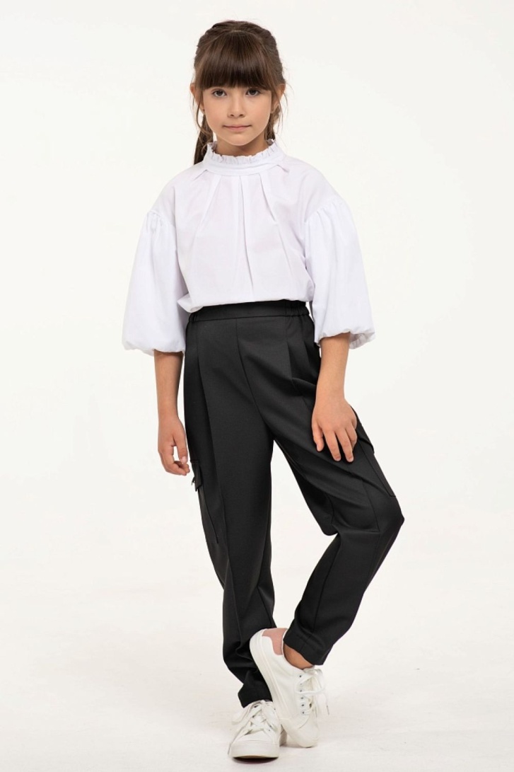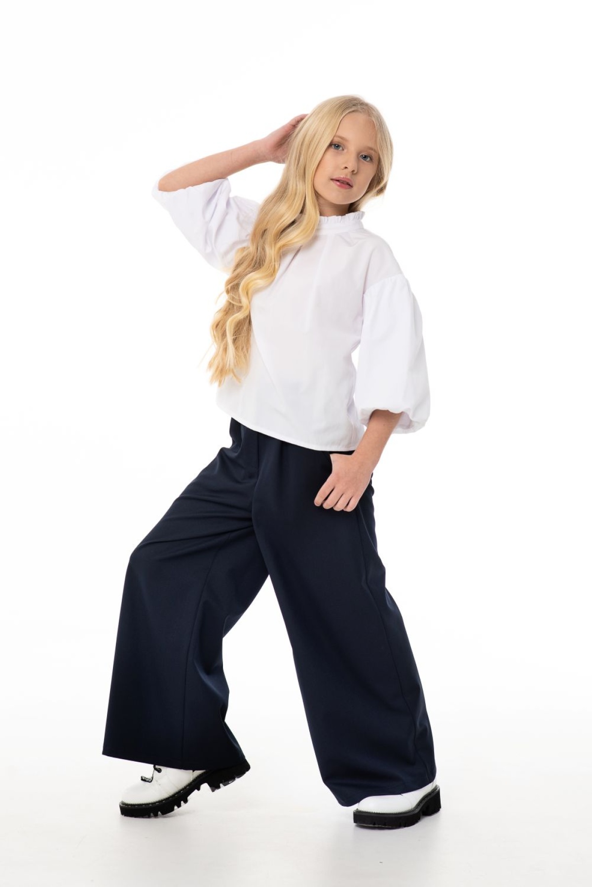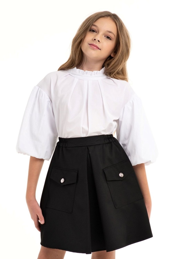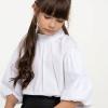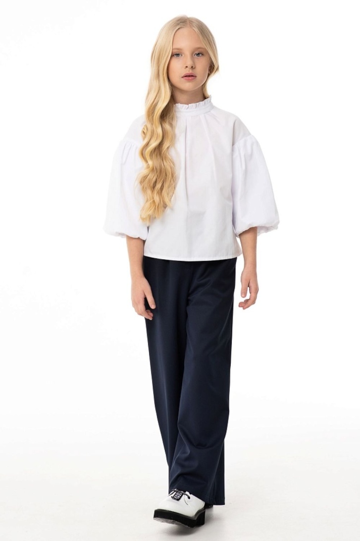Белая школьная блузка для девочек выполнена из высокотехнологичной ткани нового поколения - поликоттон, состав 55% хлопок, 45% полиэфир. Материал обладает всеми свойствами хлопка, но улучшен для ежедневного использования:Легко гладить, ткань имеет низкую сминаемость. Долго прослужит и сохранит первоначальный вид благодаря высокой стойкости к износу. Хорошо впитывает и отводит влагу от тела ребенка, пропускает воздух. Безопасная и гипоаллергенная, мягкая ткань, комфортная к телу. Лаконичный дизайн детской блузки - без излишеств, как идеальный баланс строгости и очарования. Универсальный вариант для уроков, праздничных линеек и фото – смотрится нарядно, но не вычурно. Блузку можно носить навыпуск и заправлять. Рукава-буфы 3/4 – мягкий объём, который не мешает писать и двигаться, но делает силуэт выразительнее. Аккуратные рюши – деликатный женственный акцент, который подчеркнёт опрятность образа.