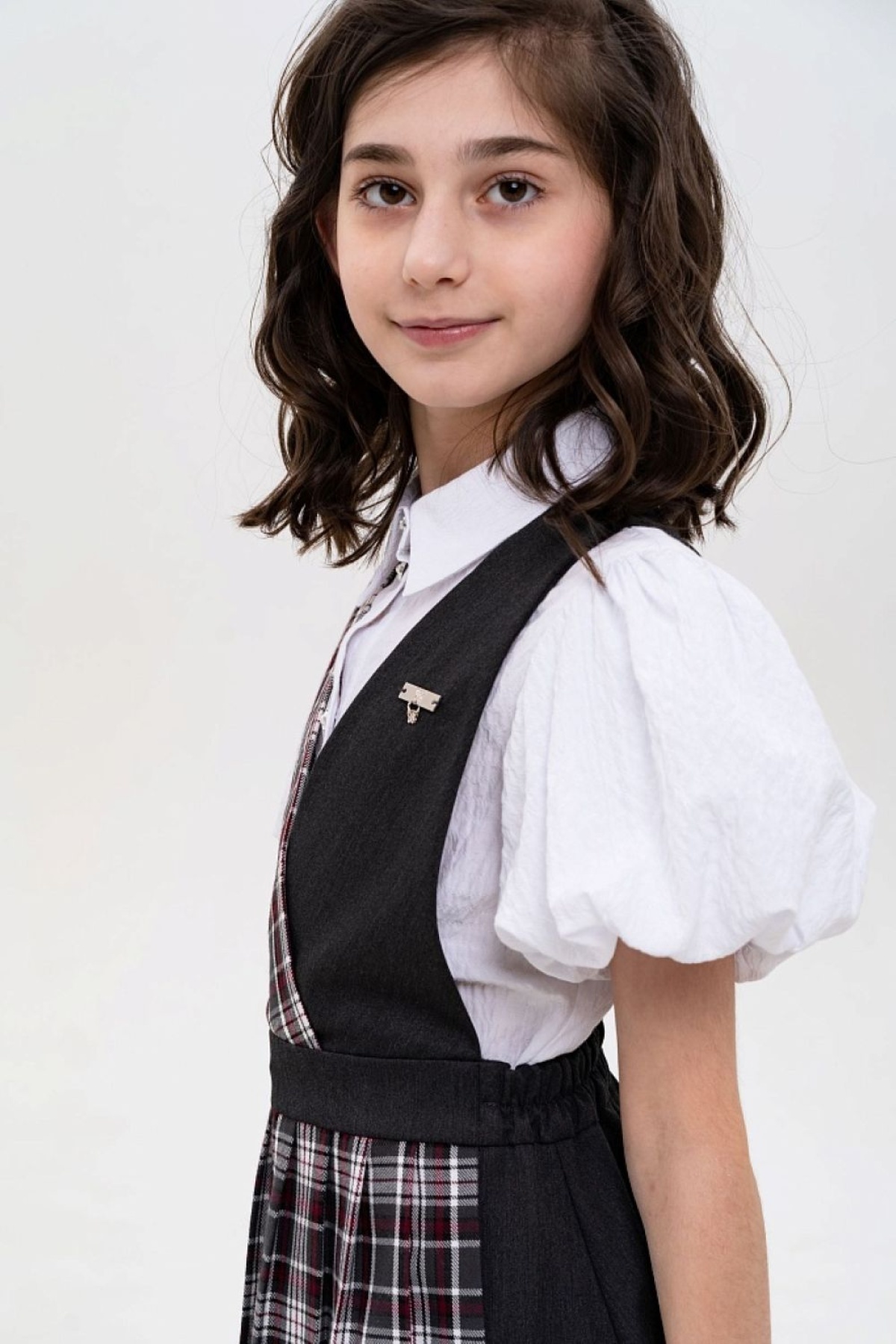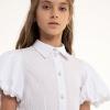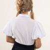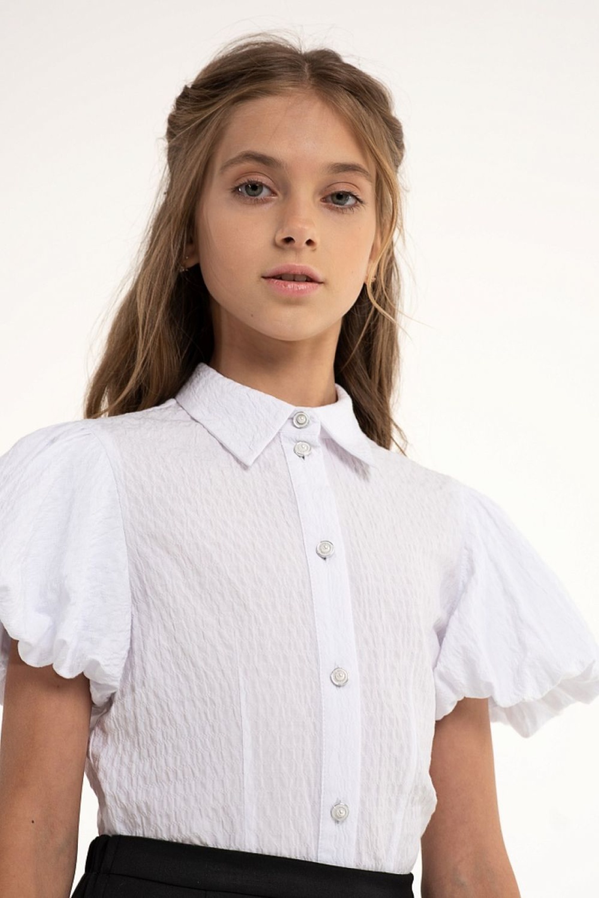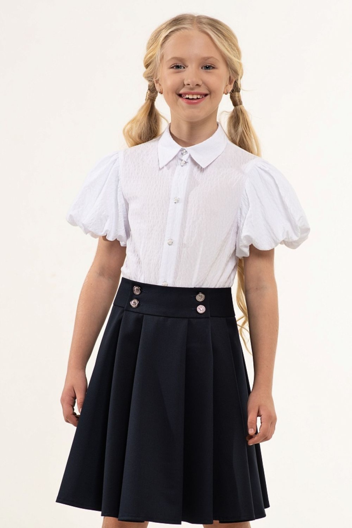 Белая школьная блузка для девочек выполнена из высокотехнологичной ткани нового поколения - поликоттон с эффектом крэш. Состав: 55% хлопок, 45% полиэфир. Материал обладает всеми свойствами хлопка, но улучшен для ежедневного использования: Не нужно гладить, ткань имеет низкую сминаемость и необычную фактуру. Долго прослужит и сохранит первоначальный вид благодаря высокой стойкости к износу. Хорошо впитывает и отводит влагу от тела ребенка, пропускает воздух. Безопасная и гипоаллергенная, мягкая ткань, комфортная к телу. Лаконичный дизайн без излишеств в декоре - белая детская блузка с короткими рукавами отлично смотрится абсолютно в любых комплектах: Минималистичная базовая школьная рубашка для девочек подходит на каждый день с юбками, брюками и жилетами, под сарафаны. Дополните модель нарядным жабо, акцентной брошью или галстуком-бантом, и блузка будет смотреться более празднично в образах для торжественных случаев.Пышные фонарики сохраняют свой объем благодаря сборке на мягкую трикотажную внутреннюю часть ру