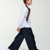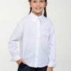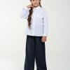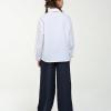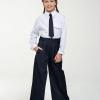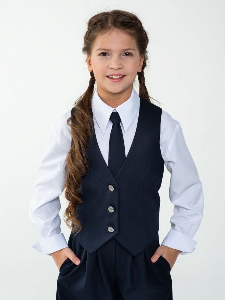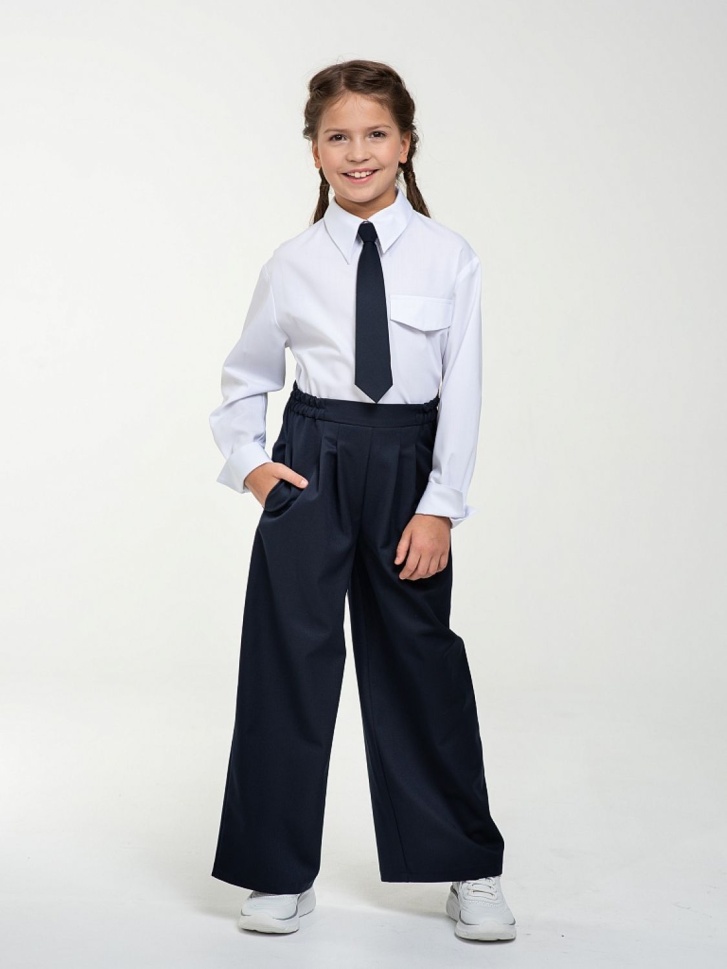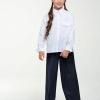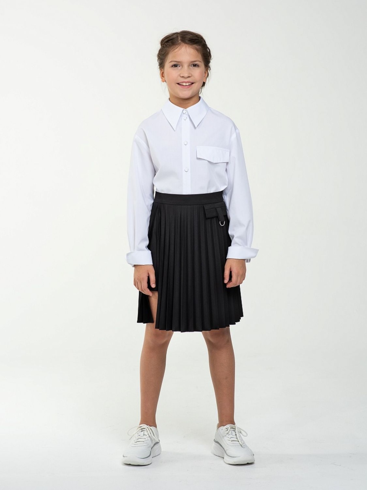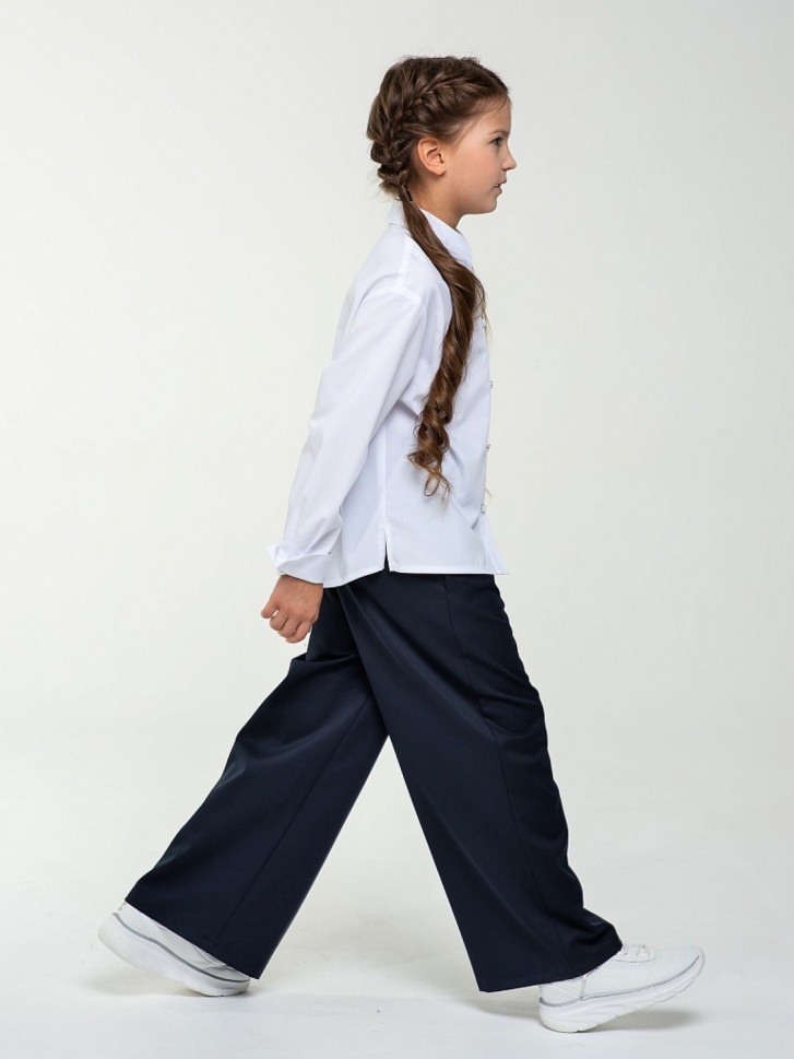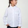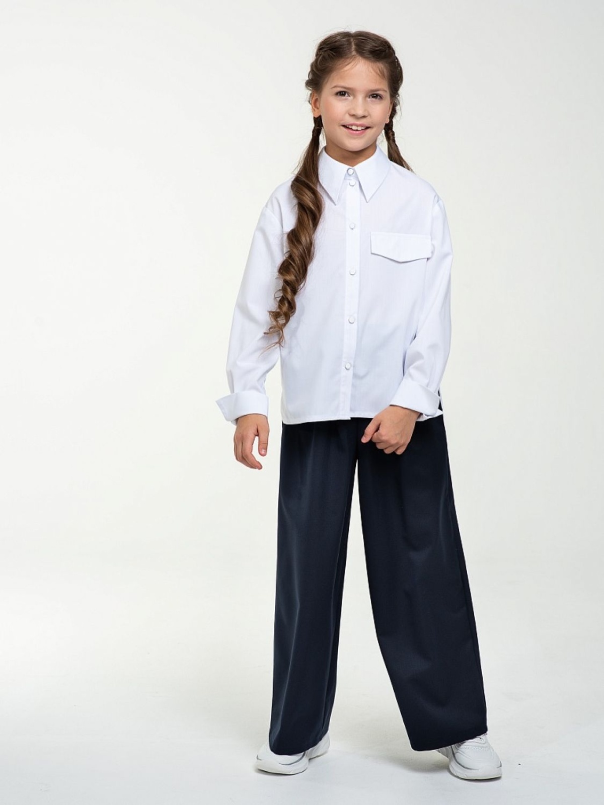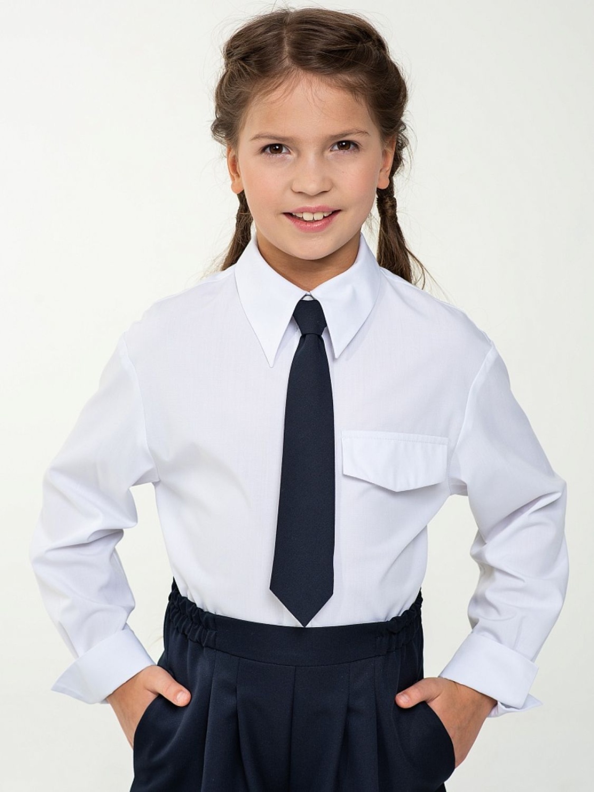 Белая школьная рубашка для девочек. Максимально комфортная и удобная школьная блузка, за счет простого слегка свободного кроя и прямого силуэта, легко сочетается в различных школьных и повседневных комплектах. Рубашку можно носить навыпуск или заправлять, использовать в многослойных образах на футболку или под свитшот. Модель выполнена из российской сорочечной поливискозы премиум качества - это высокотехнологичная ткань нового поколения, состав 65% полиэфир, 35% вискоза. Материал обладает всеми свойствами хлопка, но улучшен для ежедневного использования: Легко гладить, ткань имеет низкую сминаемость. Долго прослужит и сохранит первоначальный вид благодаря высокой стойкости к износу. Хорошо впитывает и отводит влагу от тела ребенка, пропускает воздух. Безопасная и гипоаллергенная, мягкая ткань, комфортная к телу. Базовая белая блузка для девочки декорирована трендовым острым воротничком, манжетами необычного кроя (можно носить подвернутыми или расправленными) и клапаном.
