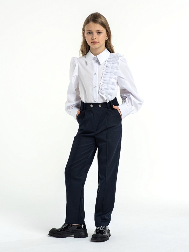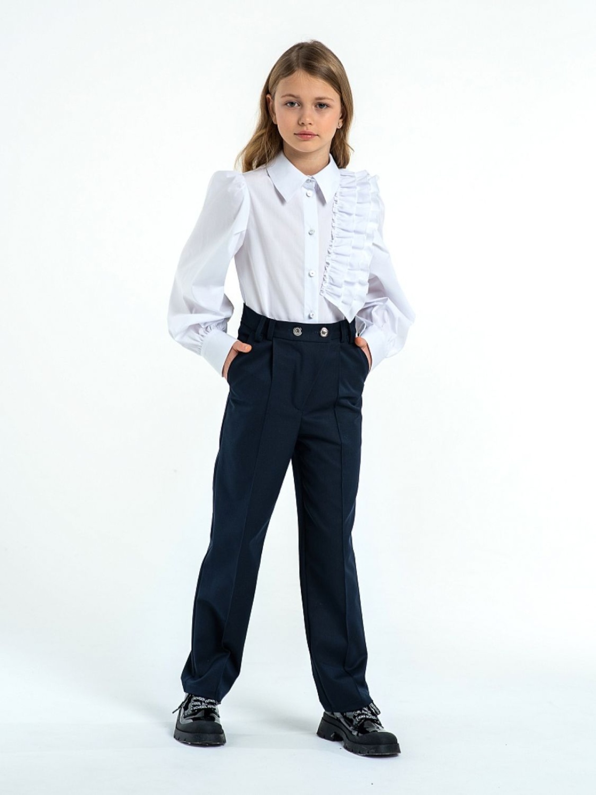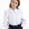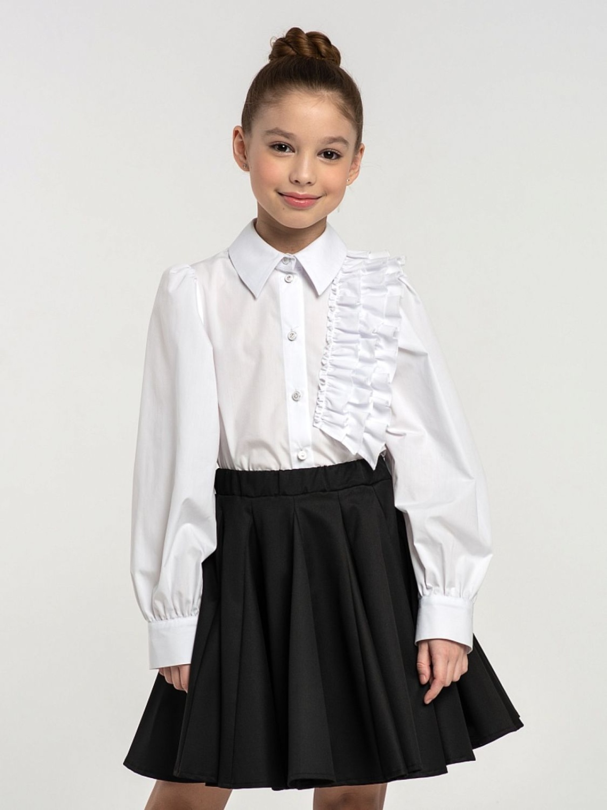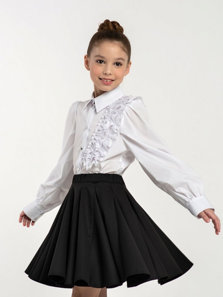 Белая школьная блузка для девочек с ассиметрично расположенными рюшами. Модель отлично подходит для торжественных случаев - линейка на 1 сентября, праздники и мероприятия в актовом зале, совместные фотосъемки для классного альбома. Благодаря своему лаконичному дизайну, её можно носить в школу и в обычные дни. Детская блузка с необычным дизайном поможет создать интересные и оригинальные образы и подчеркнет чувство стиля своей обладательницы. Белая школьная рубашка для девочек выполнена из российского сорочечного поликоттона премиум качества - это высокотехнологичная ткань нового поколения, состав 55% хлопок, 45% полиэфир. Материал обладает всеми свойствами хлопка, но улучшен для ежедневного использования: Легко гладить, ткань имеет низкую сминаемость. Долго прослужит и сохранит первоначальный вид благодаря высокой стойкости к износу. Хорошо впитывает и отводит влагу от тела ребенка, пропускает воздух. Безопасная и гипоаллергенная, мягкая ткань, комфортная к телу.