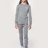 Комплект для девочки ТЕРМО (лонгслив и легинсы) из двухслойного трикотажного полотна. Внешний слой состоит из шерстяных и акриловых нитей, сохраняющих тепло и выводящих лишнюю влагу. Шерсть мериноса, входящая в состав изделия, очень тонкая, мягкая, не вызывает аллергии, раздражения и не колется. Внутренняя часть выполнена из 100% хлопка. Легкий, мягкий и приятный на ощупь комплект хорошо сохраняет тепло. Не сковывает движения и выводит влагу. Функционал: • плоские швы делают такое белье максимально незаметным под одеждой, • удлиненный низ лонгслива обеспечивает надежную защиту спины от холода при любой активности, • легинсы хорошо садятся по фигуре и крепко держатся благодаря поясу с широкой резинкой. Комплект можно носить под верхнюю одежду в холодный период. Подойдет на температуру до -30°С при условии соблюдения принципа многослойности.