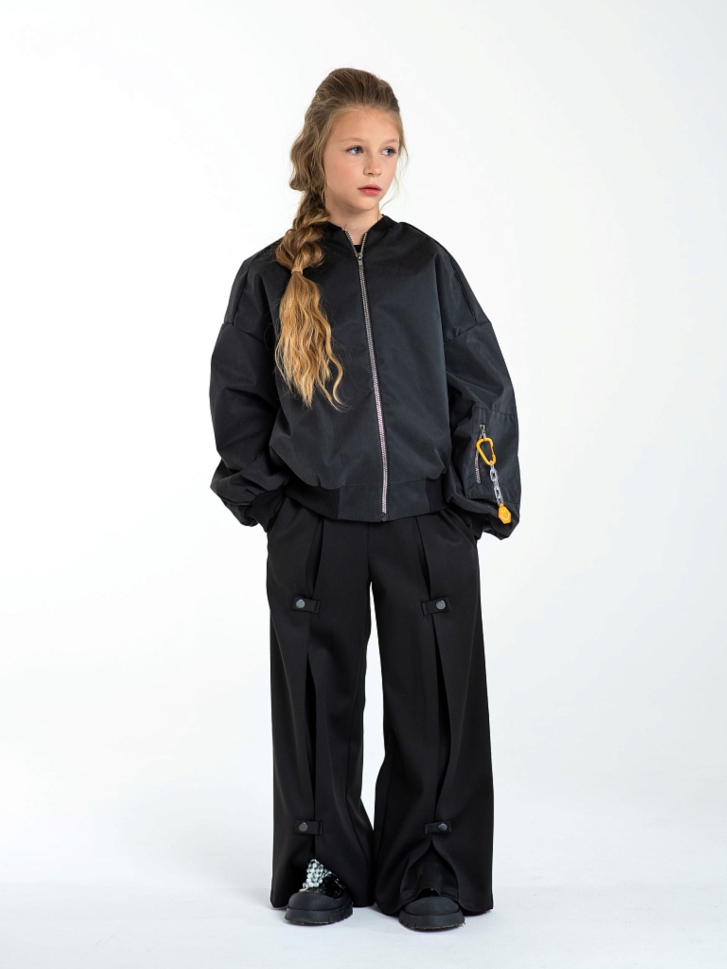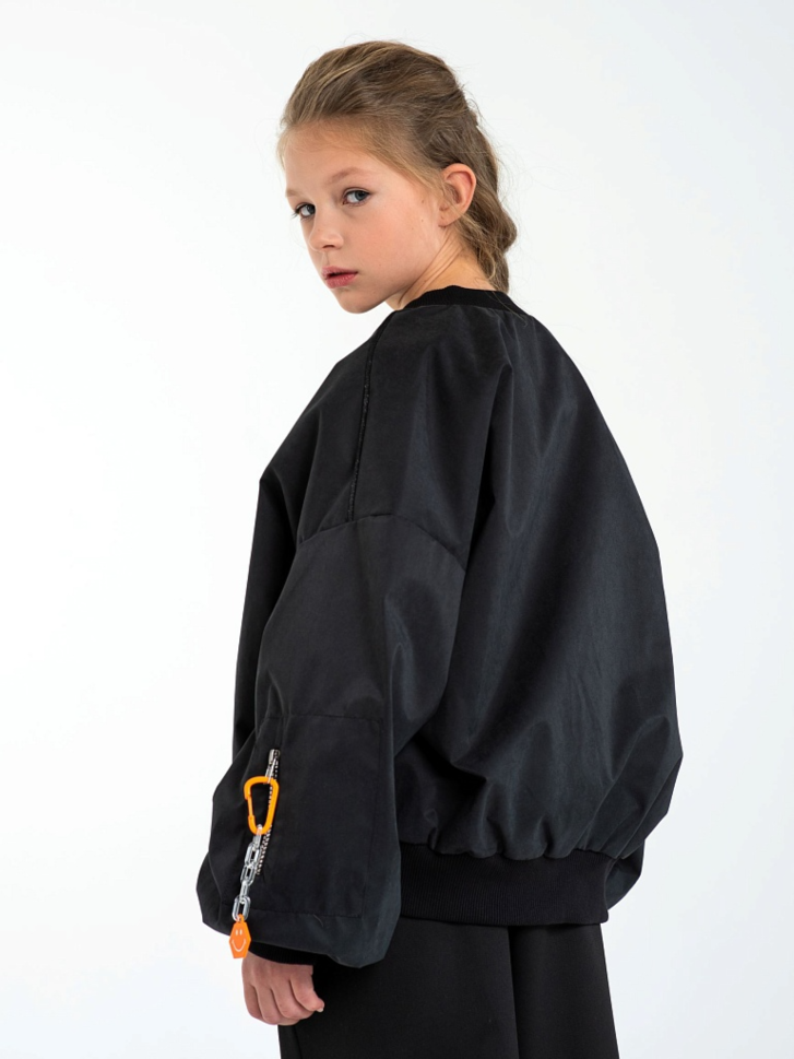Куртка бомбер для мальчиков и девочек, выполнена из инновационного материала, сочетающего в себе непревзойденные защитные свойства и изысканную эстетику. Состав: верх - полиэстер/нейлон, обработка Water Resistence, Мембрана; подкладка – 50% вискоза, 50% п/э. Высокотехнологичная курточная ткань премиального уровня обладает водоотталкивающими и ветрозащитными свойствами, а особая обработка ткани придает ей приятную и необычную матовую фактуру, что станет стильным акцентом гардероба в прохладный период. Легкий oversize силуэт дополнен объемными рукавами, на одном из которых накладной карман на молнии.