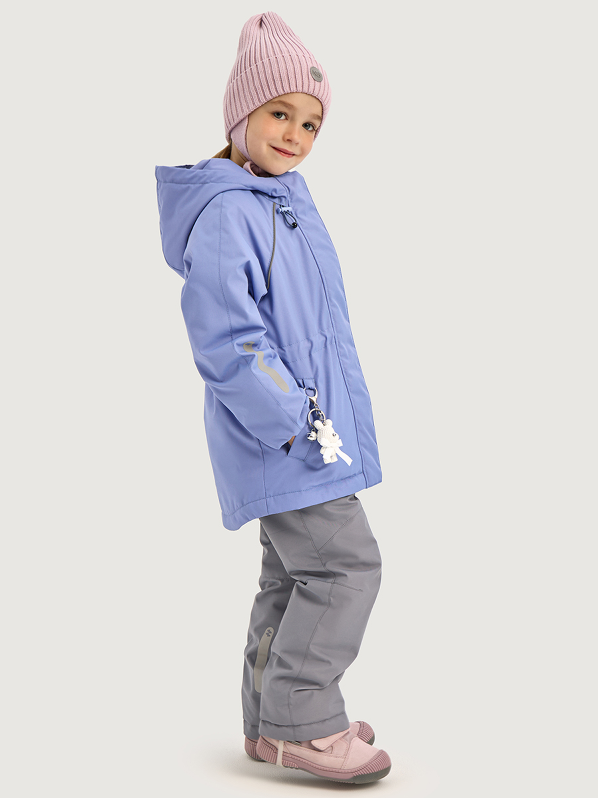 Костюм СКАНДИ с системой роста на один размер (длина рукавов и брючин увеличивается на 4-5см). Костюм из мембранной ткани 5000/5000 с водо- грязеотталкивающей технологией TEFLON. Мембранная ткань - это непродуваемый и водонепроницаемый материал, который надежно защищает от ветра и влаги. Благодаря дышащим свойствам мембраны ребенку будет комфортно в любую погоду и он не вспотеет. Ткань обработана снаружи экологически чистым протектором TEFLON для защиты от воды и грязи. Мембрана в сочетании с утеплителем нового поколения FIBERlite сохраняет тепло во время прогулок, позволяя телу дышать. Флисовая подкладка отводит влагу и имеет хорошие теплоизоляционные свойства. Куртка со съемным брелком-игрушкой. Функционал: - центральная застежка на молнии, - ветрозащитная планка, - карманы с застежкой на кнопку, - кулиса для регулировки объема по капюшону и по талии, - манжеты на резинке, - внутренняя сторона манжета из флиса, - внутренние бретели для возможности снять куртку в помещении. Мы все продумали до мелочей, п
