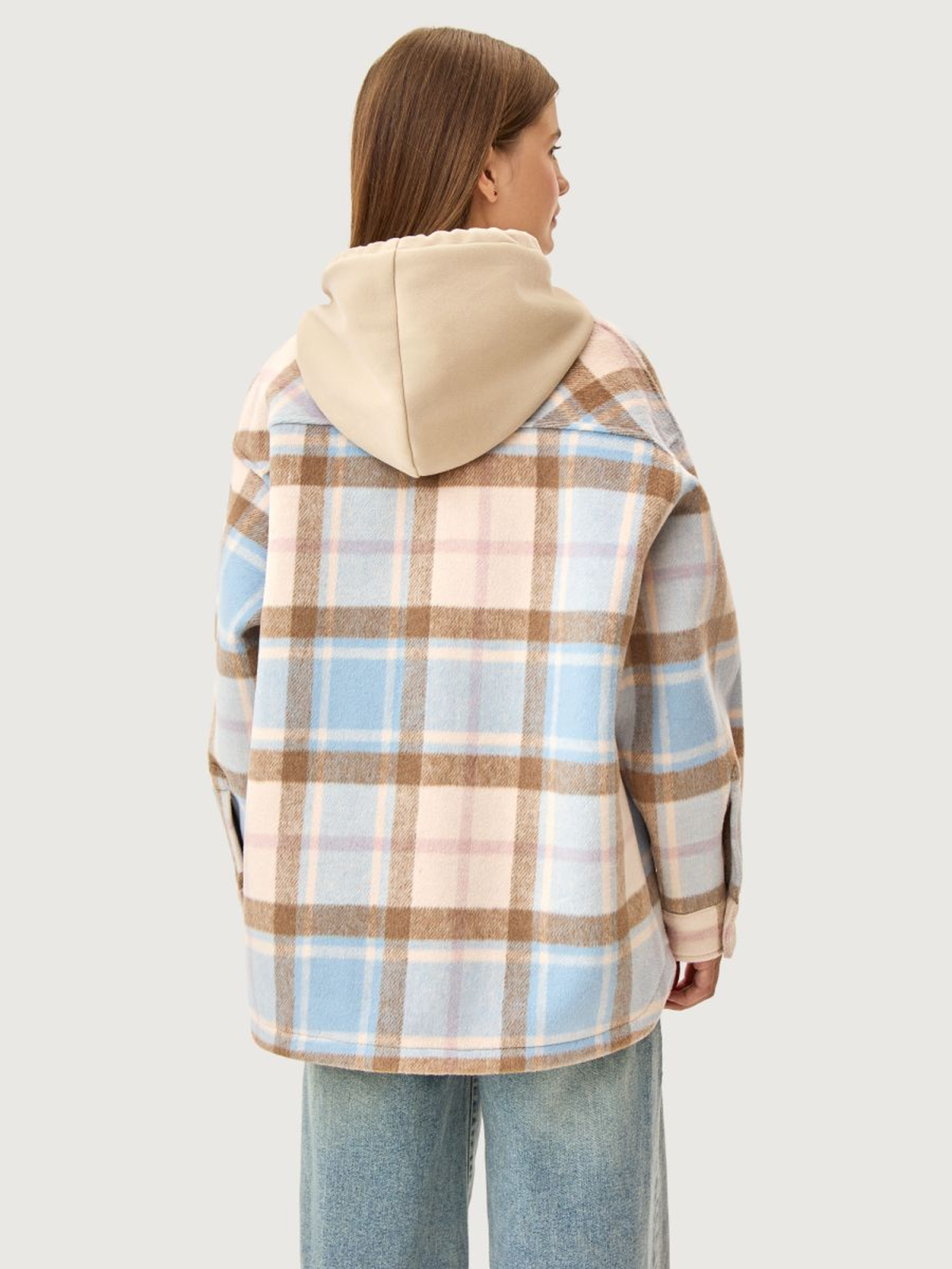 Куртка-рубашка КАМПУС в клетку из пальтовой ткани дублированной мехом. Пальтовая ткань с мягкой ворсистой фактурой, приятная на ощупь. Мех-барашек с изнаночной стороны обеспечивает защиту от холода и дарит ощущение тепла и уюта. Свободный прямой крой со спущенной линией плеча не сковывает движение и создает максимальный комфорт в носке. Функционал: - центральная застежка на кнопки, - накладные карманы с клапаном на кнопке. Мы все продумали до мелочей, поэтому у модели низ рукава с манжетой на кнопке, втачной капюшон из футера. Комфортная температура эксплуатации от +5°С до +15°С.