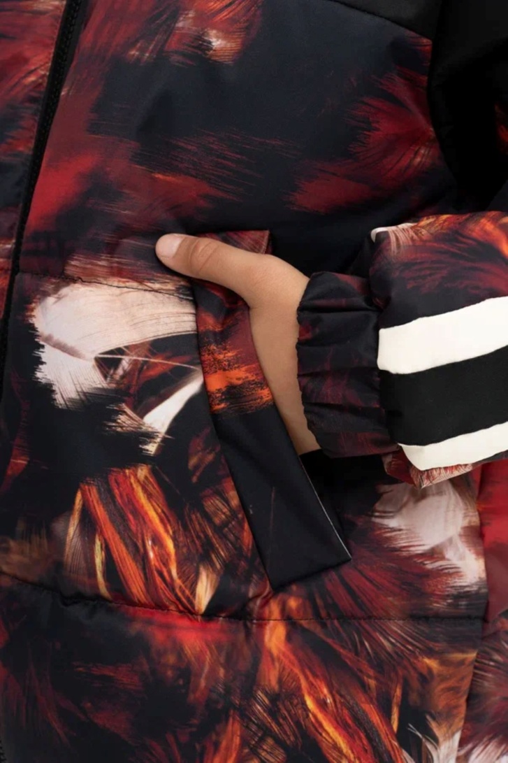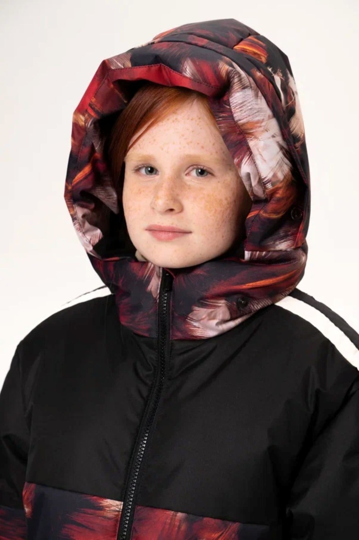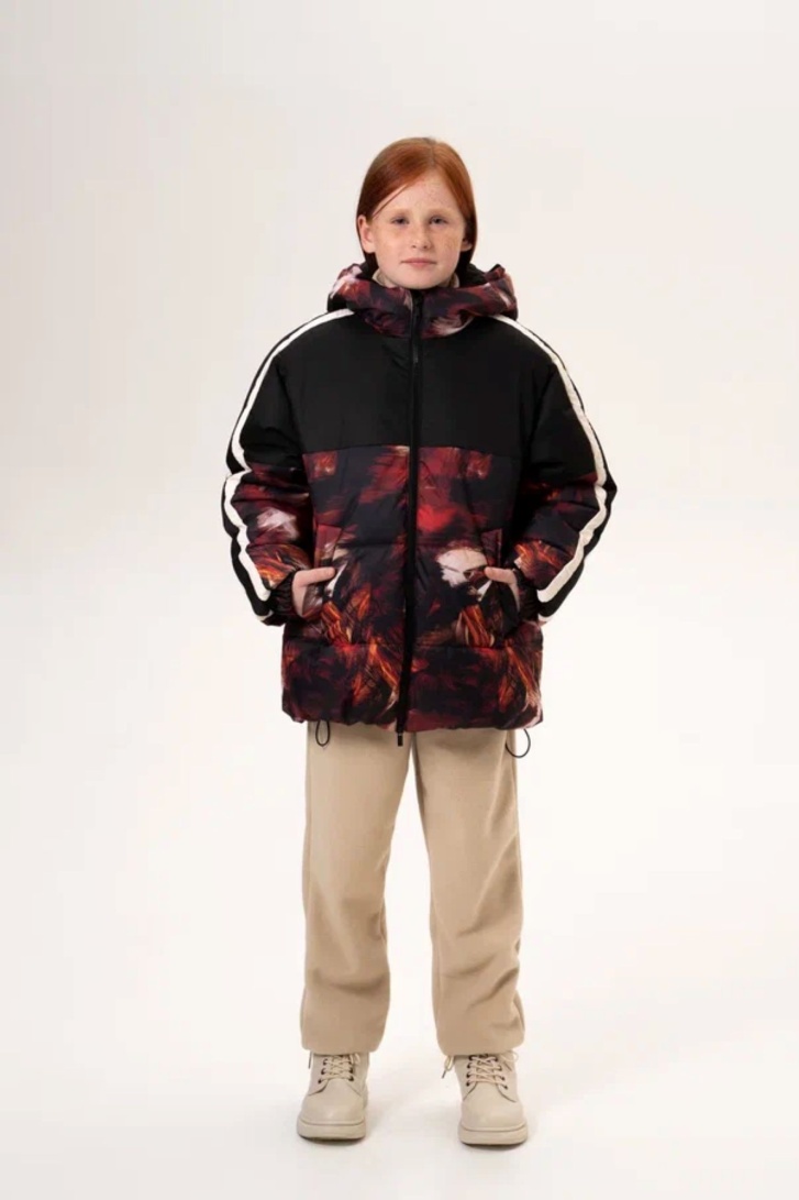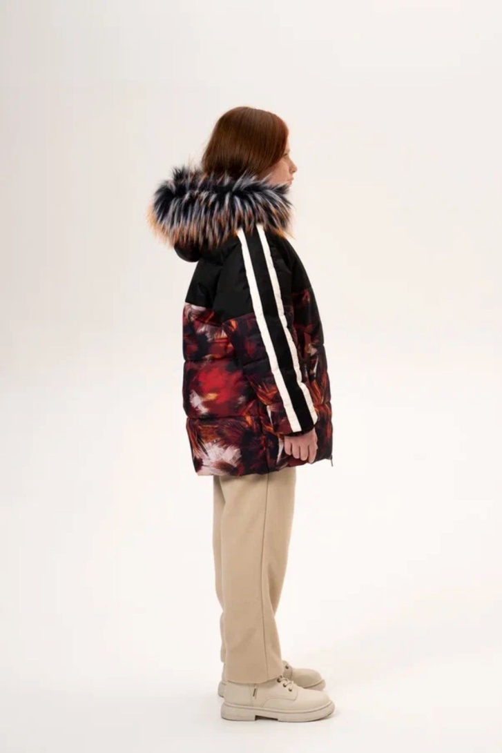 КУРТКА УЛАНА ПРИНТ ОГНЕННЫЕ ПЕРЬЯ ЧЁРНЫЙ НАТ. ОПУШКА