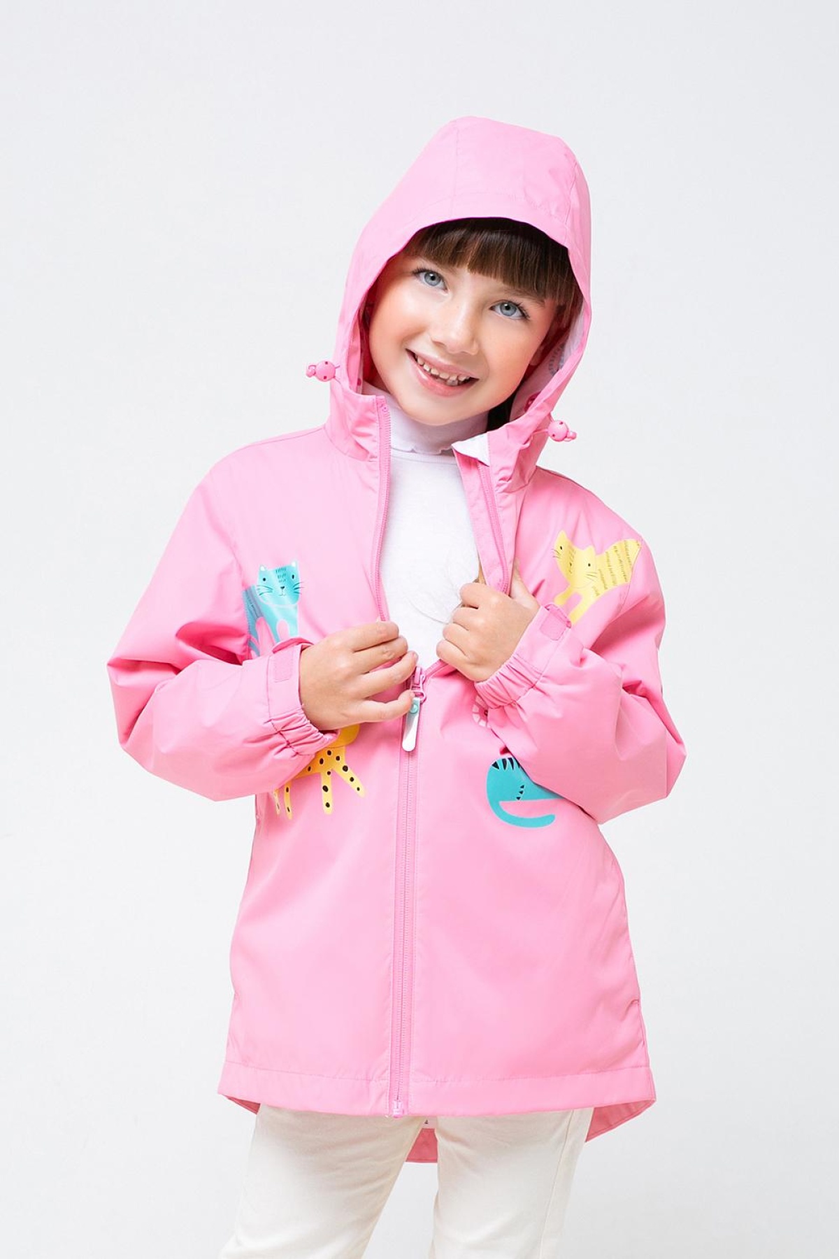 Куртка для девочки без утеплителя. Рекомендованный температурный режим: от +15 и выше без поддевы и от +8 и выше с поддевой. Мембрана 1000/1000. Верхняя ткань покрыта тефлоновой пропиткой, которая помогает отталкивать воду и грязь. Подклад комбинированный: 35% хлопок, 65% полиэстер. Подклад в размере 80-86 - 100% хлопок. Застёгивается на нейлоновую молнию. Предусмотрена защита подбородка. Внутри - дополнительная ветрозащитная планка. Спинка удлинена и закруглена. Вшитый капюшон утягивается с помощью шнурка со стопперами. Рукава с эластичными манжетами фиксируются на запястьях с помощью липучек. Светоотражающие нашивки на рукаве и спинке обеспечивают безопасность в тёмное время суток. По бокам удобные карманы без застёжек.