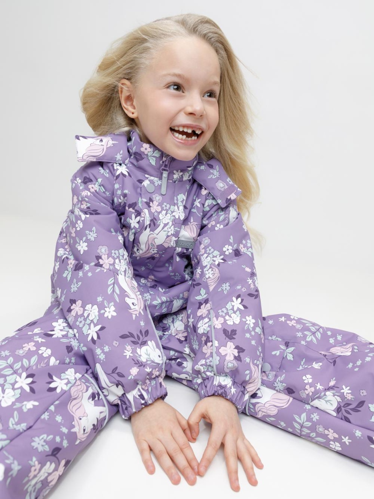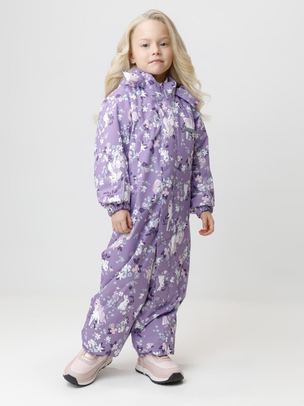 Демисезонный комбинезон для девочки с утеплителем SEE, 120 г/м2. Выполнен из мембранной ткани с дополнительной тефлоновой обработкой. Данный вид обработки предохраняет изделие от загрязнения и лучше отводит влагу. Подклад из 100% полиэстера. Для удобного одевания комбинезон застёгивается на удлинённую молнию с защитой подбородка и имеет дополнительную ветрозащитную планку на липучках и кнопках. Капюшон не снимается, по верхнему краю есть эластичная вставка. По низу рукавов и брючин, а также на спинке изделия предусмотрены эластичные резинки для лучшего прилегания. Для фиксации комбинезона используются съёмные силиконовые штрипки. Во всех изделиях верхнего ассортимента для безопасности ребёнка предусмотрены светоотражающие элементы.