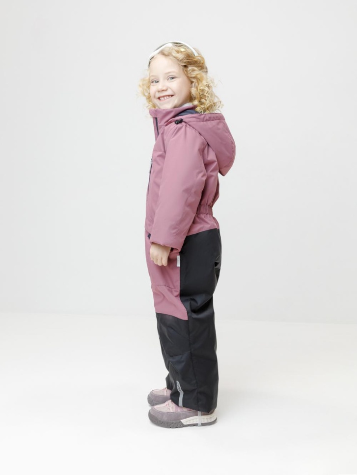 Демисезонный комбинезон для девочки с утеплителем SEE®, 120 г/м2. Выполнен из мембранной ткани с дополнительной тефлоновой обработкой. Данный вид обработки предохраняет изделие от загрязнения и лучше отводит влагу. Подклад из 100% полиэстера. Для удобного одевания комбинезон застёгивается на удлинённую молнию с защитой подбородка. Капюшон не снимается, по бокам эластичная утяжка со стопперами. Внутри рукавов мягкие манжеты из лайкры. По низу и по спинке изделия предусмотрены эластичные резинки для лучшего прилегания. Для фиксации комбинезона используются съёмные силиконовые штрипки. Модель оснащена системой роста: рукава и штанины можно аккуратно распороть по специальному шву, увеличивая длину на 5 см и позволяя комбинезону «расти» вместе с ребёнком. Во всех изделиях верхнего ассортимента для безопасности ребёнка предусмотрены светоотражающие элементы.