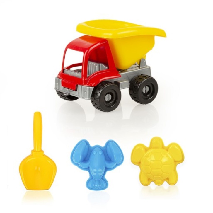 У390 Песочный набор "Дорожный" в рюкзаке ( 2 формочки, совок, машинка )