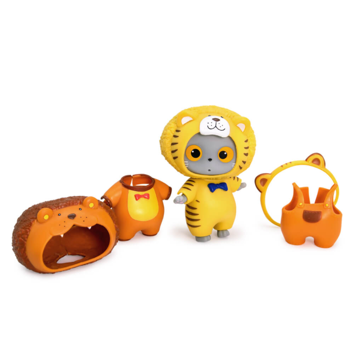 Сегодня Басик провел целый день в зоопарке, наблюдая за тиграми и львами. Очарованный знакомством со своими дальними родственниками, Басик захотел ненадолго стать таким, как они. Оценишь его преображение? В наборе красивый ободочек с ушками, костюмчики льва и тигра с изящными галстуками-бабочками, а также комбинезон цвета карамели для повседневных прогулок.